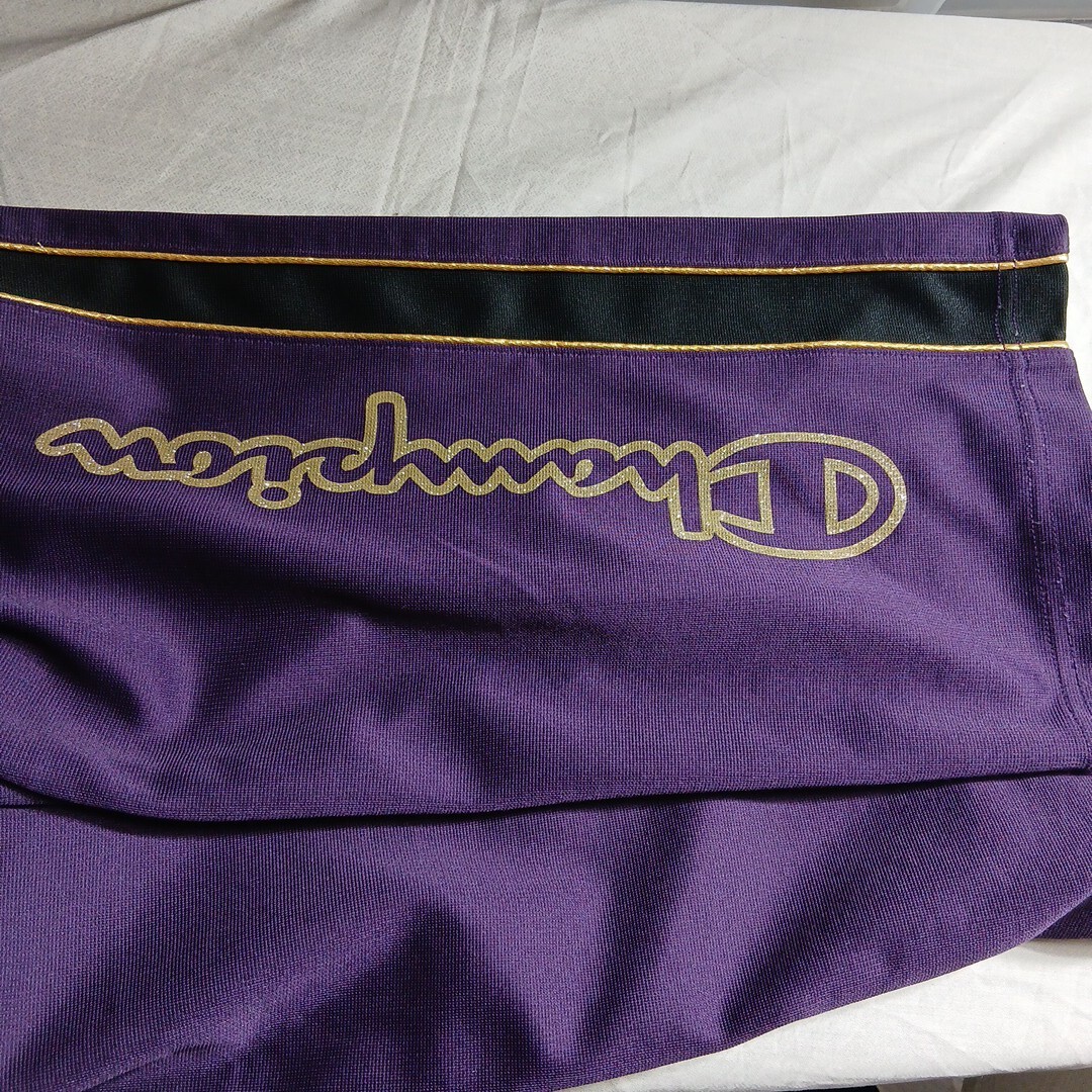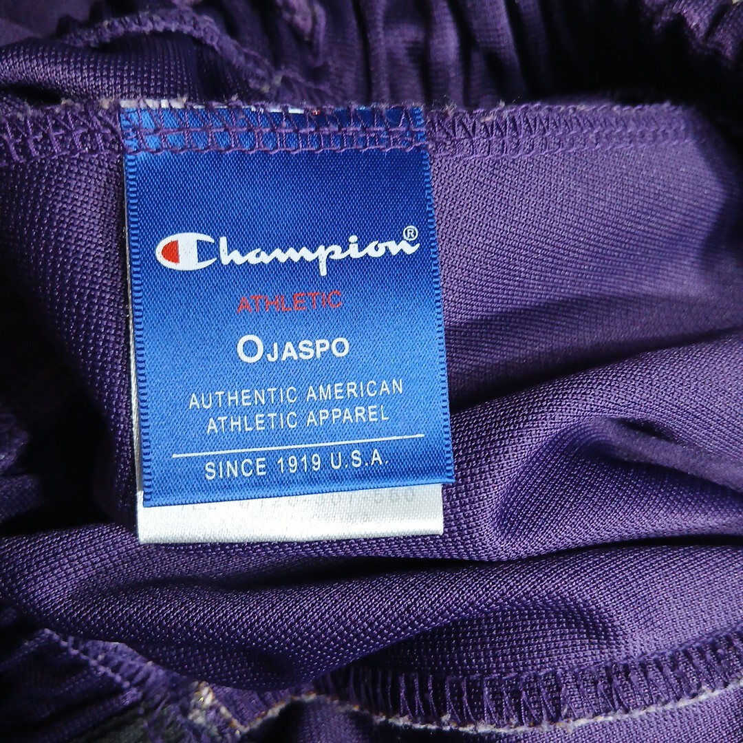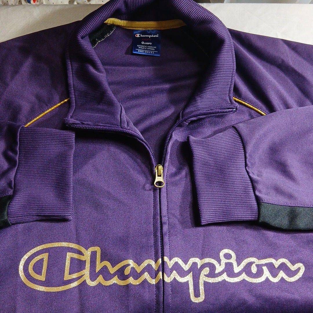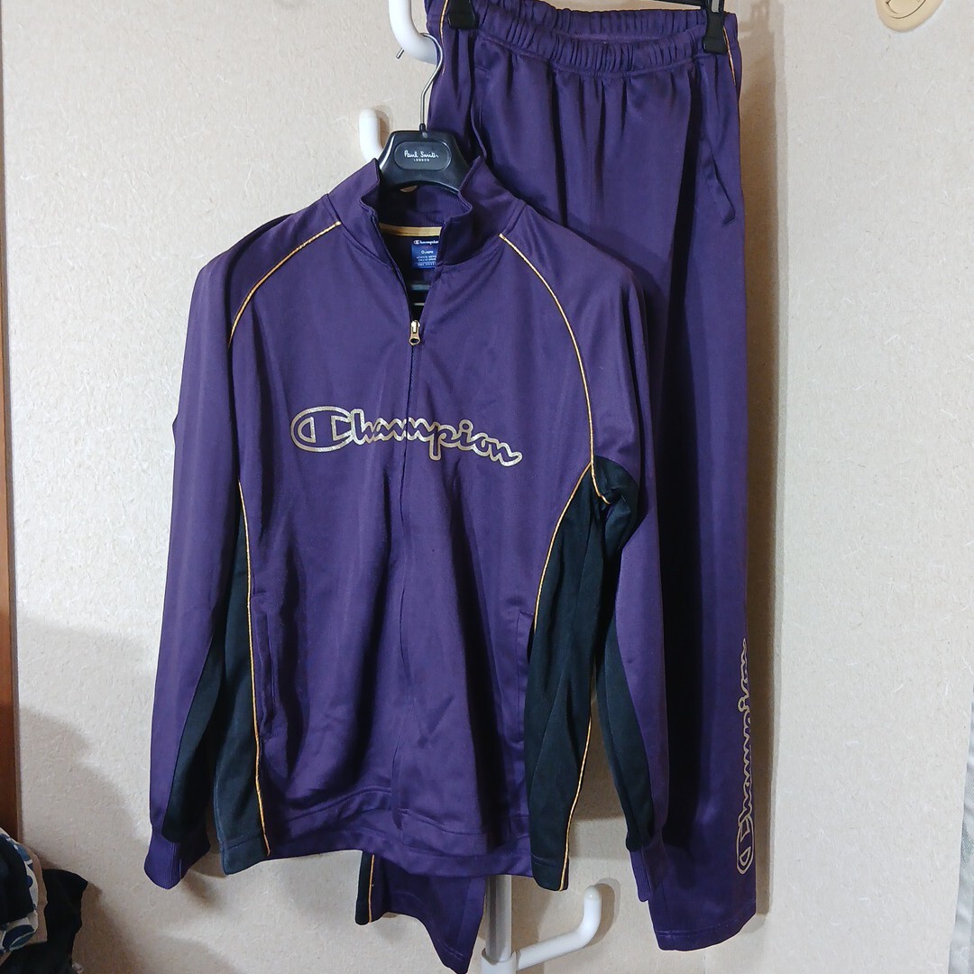 チャンピオン(ゴールドウイン)のジャージのセットアップです。サイズはOで、実寸でおおよそ肩幅46センチ、身幅56センチ着丈70センチ、袖丈63センチ、40センチ、股下76センチ、裾幅21,5センチです。素材は、ポリエステル100%です。色は、紫色です。多少使用感などございますが特に目立つキズや汚れは無いと思います。い