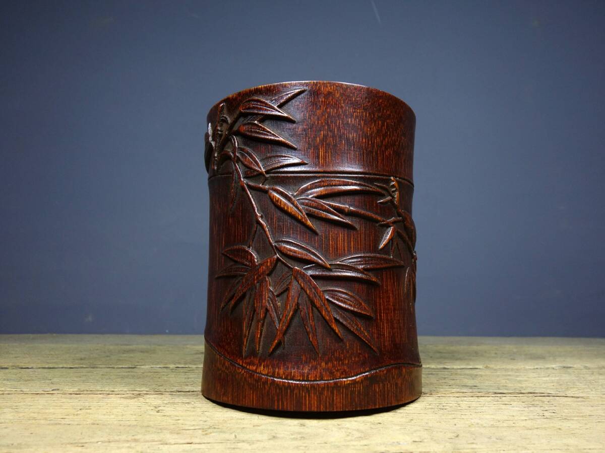 | 【古寶奇蔵】竹材・細密彫・ステップ高升紋・筆筒・筆立・文房具・書道品・古董品・中国古玩・時代物・稀少珍品・中国時代美術111112 |