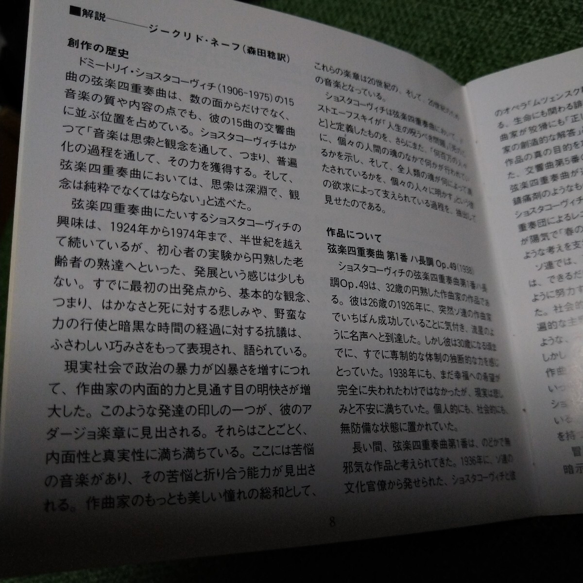 出品者コメント:外箱、解説やや使用感。やっと聴けた!金字塔! <BR>レーベルBMGジャパン国(Country)JPNフォーマットCD組数6 <BR>規格番号BVCX8001通販番号XAT-1245255365発売日9月26日EAN4988017071908 <BR>商品詳細情報 <BR> <BR>BMGメロディア音源、日本国内独自リマスタリング <BR> <BR>人類の至宝、ボロディンQのショスタコーヴィチ全集 <BR> <BR>【演奏者】 <BR>ボロディン四重奏団 <BR>スヴャトスラフ・リヒテル(ピアノ)[DISC2;2] <BR>プロコフィエフ四重奏団[DISC6;3] <BR> <BR>【録音】 <BR>1978年-1983年 <BR>1964年[DISC6;3] <BR> <BR>※弦楽四重奏曲第13番のみ収録データ不詳 <BR> <BR> <BR>アナログ・ステレオ収録 <BR> <BR>1945年に結成、チェロのベルリンスキーを精神的支柱に、今なお数多い現代の弦楽四重奏団をリードする、ロシアの名クァルテットによるショスタコーヴィチ全集が嬉しい復活。 結成当初から作曲者に演奏法を直接指導されたという同団の演奏には、「ボロディンSQなくしてショスタコーヴィチの弦楽四重奏曲は語れない」との絶賛が数多く寄せられています。 <BR> ボロディン弦楽四重奏団は、この他にも1962-72年にかけてショスタコの弦楽四重奏曲集をレコーディングしていますが、まだ作曲されていなかった第14、15番は当然ですが未収録。作曲者の没後に全曲レコーディングされたこの全集は、いわばショスタコ四重奏の規範として知られる名盤です。1 <BR>1.弦楽四重奏曲第1番ハ長調op.49 <BR>Disc-1 <BR>・『エレジー』~弦楽四重奏のために(録音:1991年) <BR>・弦楽四重奏曲第1番(1980年) <BR>・弦楽四重奏曲第2番(1983年) <BR>2.ピアノ五重奏曲ト短調op.57 <BR>Disc-2 <BR>・弦楽四重奏曲第3番(1983年) <BR>・弦楽四重奏曲第4番(1982年) <BR>3.弦楽四重奏曲第7番嬰ヘ短調op.108 <BR>Disc-3 <BR>・弦楽四重奏曲第5番(1984年) <BR>・弦楽四重奏曲第6番(1981年) <BR>・弦楽四重奏曲第7番(1981年) <BR>Disc-4 <BR>・弦楽四重奏曲第8番(1978年) <BR>・弦楽四重奏曲第9番(1981年) <BR>・弦楽四重奏曲第10番(1982年) <BR>.弦楽四重奏曲第14番嬰ヘ短調op.142 <BR>Disc-5 <BR>・弦楽四重奏曲第11番(1981年) <BR>・弦楽四重奏曲第12番(1981年) <BR>・弦楽四重奏曲第13番(1981年) <BR> <BR>Disc-6 <BR>・弦楽四重奏曲第14番(1981年) <BR>・弦楽四重奏曲第15番(1978年) <BR>・弦楽8重奏のための2つの小品:これのみ、プロコフィエフSQとの協演、1964年の録音 <BR> ボロディン弦楽四重奏団 <BR> ミハイル・コペリマン(1stvn) <BR> アンドレイ・アブラメンコフ(2ndvn) <BR> ドミトリー・シェバーリン(va) <BR> ワレンチン・ベルリンスキー(vc) <BR> <BR> 録音:1978-91年[ステレオ] <BR> <BR>★★★★★ ショスタコーヴィチは、弦楽四重奏曲を交響... 投稿日:2011/07/08 (金) <BR> <BR>ショスタコーヴィチは、弦楽四重奏曲を交響曲と同様に15曲も作曲したが、これはバルトークによる6曲の弦楽四重奏曲と並んで、20世紀における弦楽四重奏曲の最高傑作との評価がなされている。確かに、作曲書法の充実度や、内容の奥深さなどに鑑みれば、かかる評価は至当であると考えられる。ショスタコーヴィチは、旧ソヴィエト連邦という、現在で言えば北朝鮮のような非民主的な独裁国家で、粛清の恐怖を耐え忍びながらしたたかに生き抜いた作曲家であった。かつて一世を風靡した「ショスタコーヴィチの証言」は現在では偽書とされているが、ショスタコーヴィチに関して記したその他の様々な文献を紐解いてもみても、その交響曲や弦楽四重奏曲などには、かかる粛清の恐怖や、スターリンをはじめとする独裁者への批判や憤り、独裁者によって粛清された犠牲者への鎮魂などが色濃く反映されていると言える。したがって、旧ソヴィエト連邦の時代を共に生き、粛清への恐怖に実際に身を置いた者こそが、ショスタコーヴィチの弦楽四重奏曲に込められたこのような深遠な世界をよりうまく音化することができると言えるのではないだろうか。ボロディン弦楽四重奏団は、旧ソヴィエト連邦下において1945年に結成され、それ以降も旧ソヴィエト連邦において活動を行ってきた団体である。したがって、その演奏は、ショスタコーヴィチの弦楽四重奏曲の心眼に鋭く切り込んでいくという鋭さ、そして凄みにおいては、他のいかなる弦楽四重奏団が束になってもかなわないレベルに達していると言えるところであり、その演奏の彫の深さは、尋常ならざる深遠さを湛えていると言える。とりわけ、最晩年の弦楽四重奏曲の凄みのある演奏には戦慄を覚えるほどであり、これは音楽という次元を通り越して、あたかもショスタコーヴィチの遺言のように聴こえるのは私だけではあるまい。なお、ボロディン弦楽四重奏団は、1960年代から1970年代の初頭にかけて、当時作曲されていなかった第14番及び第15番を除くすべての弦楽四重奏曲の録音を行っており、それも優れた名演であったが、各楽曲の本質への追及度という意味においては本演奏の方が数段上であると考えている(その分、演奏自体はかなり冷徹なものとなっていると言えなくもない。)。本演奏で唯一の難点は録音が今一つ冴えないということであ