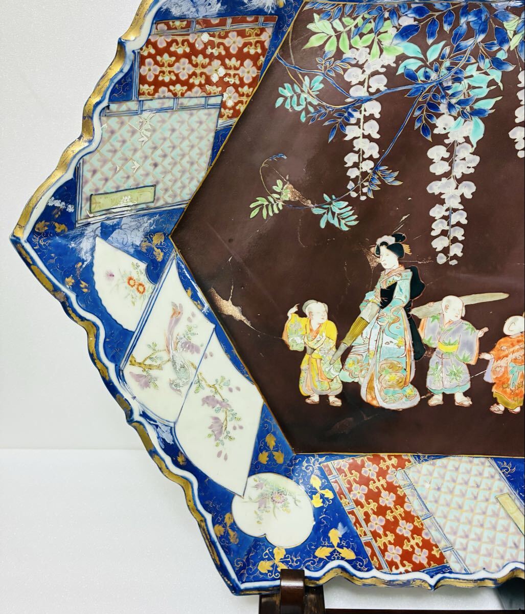 1875年~1880年に製作された、明治初期 香蘭社 色絵褐地(黒地)色絵褐地藤絵人物文 ブラックホーソン六角大皿となります。| 出价者 | 信用 | 价格 | 时间 |