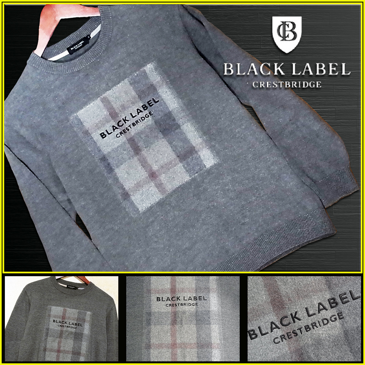 極上逸品!BOX CBチェック クルーネック ニット Mサイズ グレー▼ブラックレーベルクレストブリッジ CRESTBRIDGE バーバリー