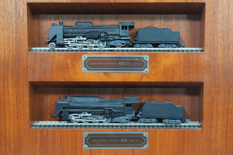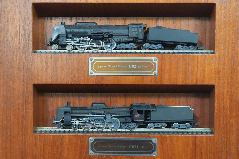 【L780】国鉄蒸気機関車 KATO D5161/C62 2/D51508/C571 鉄道模型 木製ディスプレイ Nゲージ