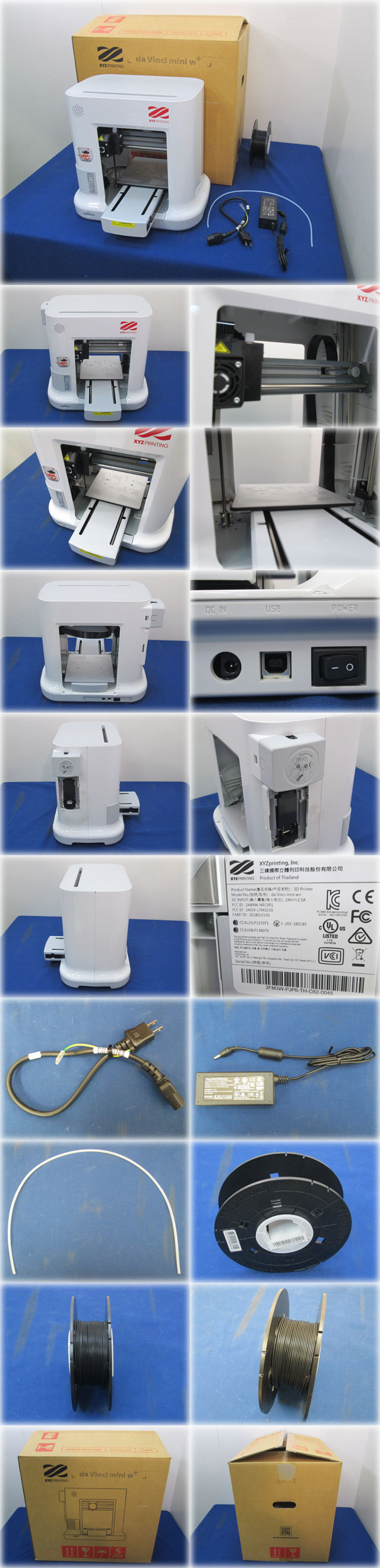 XYZPrinting 3Dプリンター DaVinciMiniW+ を出品いたします。 ■特徴■ 3Dプリンターの入門機種として 非常にリーズナブルな製品です。 本体は小型ですが大きな造形が可能です。 VCCI等の安全認証を取得し、 安全な印刷環境を実現するため DEHPフリーのPLA材を使用しています。 大きな造形が可能 小型の外観ながら、 150×150×150mmの大型の造形も可能。 簡単操作 フィラメントの種類ごとに 自動で最適なパラメータが設定され、 3Dデータを読み込んで「印刷」ボタンを押すだけで 簡単に造形が開始されます。 ご家庭で使用可能な高い安全性 VCCI等の安全認証を取得し、 安全な印刷環境を実現するため DEHPフリーのPLA材を使用しています。 ■仕様■