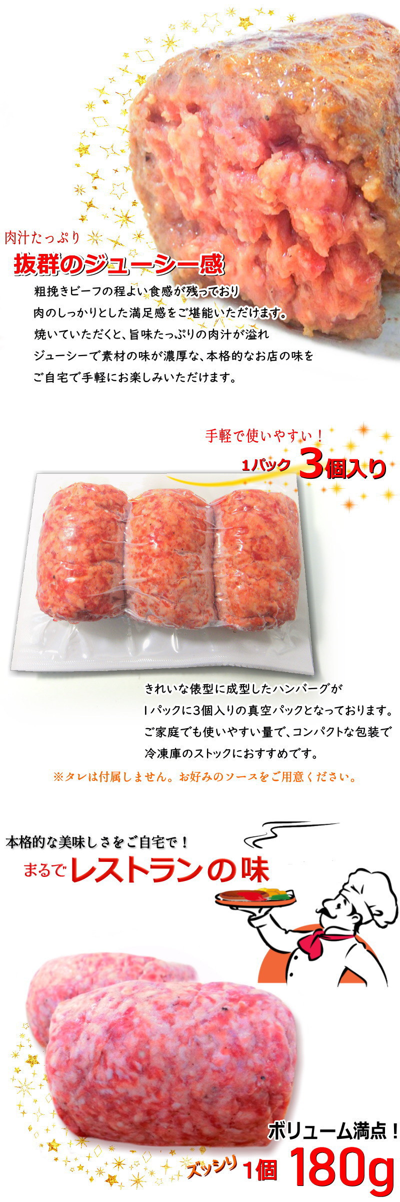 1個180gとボリューム満点!粗挽きの牛肉を使用し