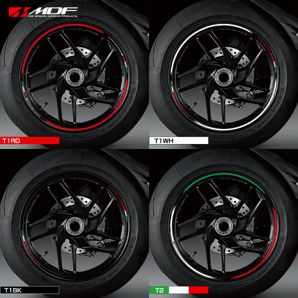 | ●デザインタイプ・・・・トリコローレタイプデザイン(イタリアンカラーデザインのリムストライプです) ●ライン幅・・・・・・・10mm幅 (6mm幅をご要望の方は、【 エムディーエフオフィシャル トリコローレ 6mm 幅 】で検索してください) ●カラータイプ・・・・・ブラック、レッド、ホワイト、トリコの4色からお選び頂けます ●適合ホイールサイズ・・8~21インチまでお客様のバイクに合わせて選択できます(前後インチ違いにも対応) ●セット内容・・・・・・前後ホイール車両1台分のリムストライプ(T2トリコカラータイプは予備が付属しません) |