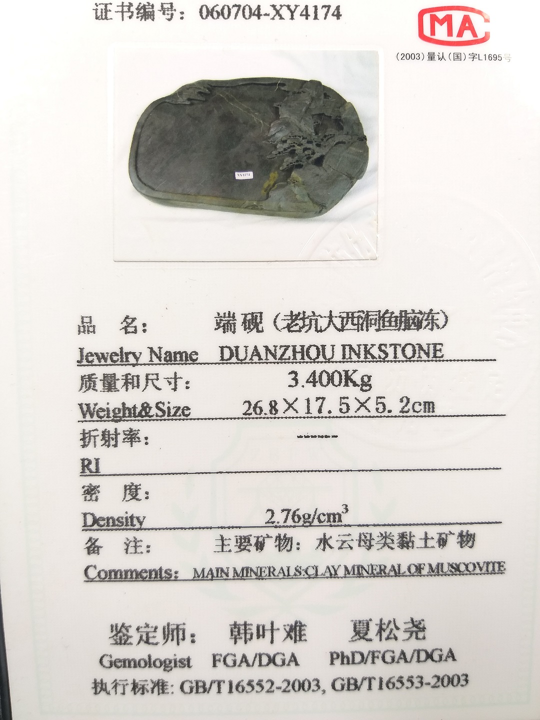 当方が出品の全ての端硯は皆、中国最高国家級鑑定機関において鑑定をしております。出品者の信用、名誉と、ご落札者の利益を保証するために、端硯偽物出品と見分けられるよう中国最高国家級鑑定証書をお付けいたしました。出品の端硯の品質は、お付けする中国最高国家級鑑定証書に基づき、弊社が保証いたします!