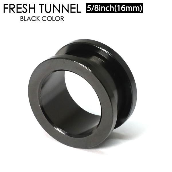 フレッシュ トンネル ブラック5/8インチ(16mm) BLACK アイレット サージカルステンレス カラーコーティング ボディピアス イヤーロブ 16ミリ