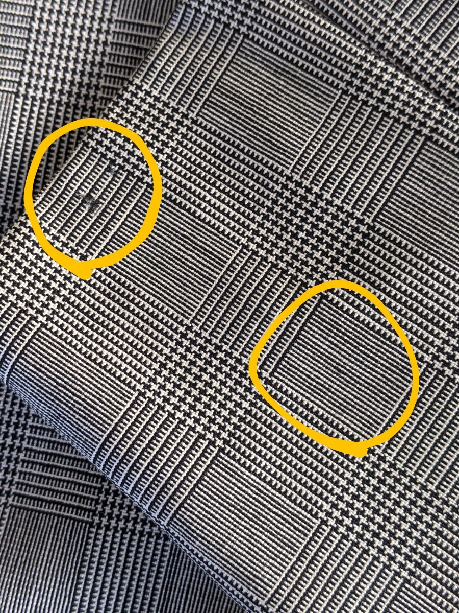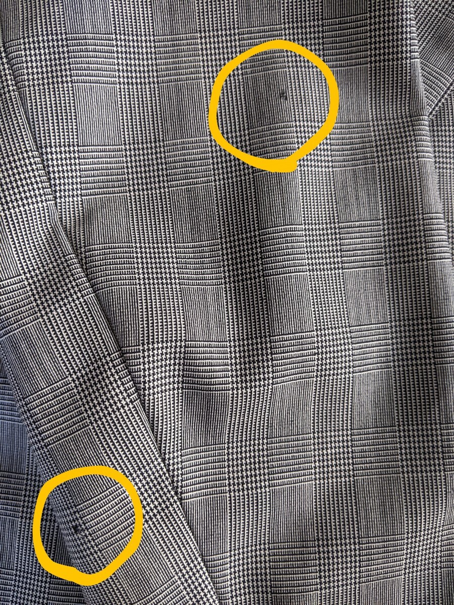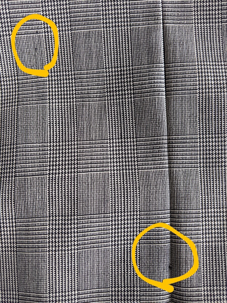 サイズが合わなくなったので出品いたします。とても軽いサマーウールのスーツです。画像が見にくくて模様がわかりにくいですが、画像2をピンチアウトしていただくとわかりやすいと思います。オーソドックスなデザインで、ジャケットはひとつボタン、ポケットはフラップなしの両玉縁ポケットと胸ポケット。柔らかめの肩パッドが入っています(画像7)。ベンツはなし。スカートはストレートの膝丈くらい、ベンツがあるので裾捌きはいいと思います。サイズはS寄りのMくらいです。サマーウールの特性なのか、引っ掛けたような部分が右袖の裏側に2箇所(画像8)、左袖口に1箇所(画像9、もうひとつはシミだと思います)、背中に2箇所(画像10)あります。スカートには見当たりませんでした。とはいえまだ着れそうなのでどなたか着ていただける方がいらっしゃったら嬉しいです。当方、猫を飼っております。配送方法についての注意書きがありますので、プロフィールをご一読下さい。何かわからないこと等ありましたら、お気軽にご質問下さい。ノークレームノーリターンでお願いいたします。| 出价者 | 信用 | 价格 | 时间 |