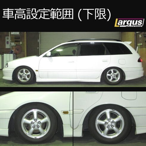 | Largus車高調のスタンダードモデルとして、街乗りはもちろん、ワインディングやサーキット等でのスポーツ走行まで幅広く対応出来る扱いやすい特性を持ったSpecS。適合は300車種以上、他メーカーではラインナップされていないようなコアな車種や絶版車まで対応。 1:車種別設計アッパーマウント ピロ式・強化ゴム式・アッパーレス式の3タイプからそれぞれ車種に適した形状を採用。 2:アッパーシート 通常のタイプからベアリング付き・スラストベアリングと車種に合わせたアッパーシートを採用。 3:高剛性スプリング スプリングは性能と耐久性を重視し、SAE9254を採用。62Φの内径を基準とし、一部車種には巻数や線形を変えた専用のテーパースプリングを用意。 4:リング 高剛性なジュラルミン製リング。大口径ショックにはベベルエッジリングを、ストラット車にはスチール製リングを採用して更に強度を高めている。 5:車種専用ロアブラケット 全て現車でフィッテング確認済み。スピンドルタイプの車種用ブラケットには、スピンドルが付属している為、純正スピンドル下取りなど面倒な手順の必要がない。 |