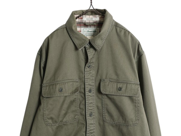 LL Bean Men's Flannel Lined Hurricane Shirt ( 298205 ) エルエルビーンの 長袖シャツです。 ゆったりめのTRADITIONAL FITモデル 素材は、BODY & LINNING : 100% COTTON しっかりとした厚手のヘビーウェイト タフな使用に耐えられるコットンツイル素材が使用されています。 着心地抜群のチェック柄のフランネルライナー付き 2レイヤーのしっかりとした防寒性、防風性も高い商品 両胸にフラップポケット付き ポケットフラップ裏、襟裏、袖先裏までのチェックの切替で ロールアップ、襟を立てた時に見える チェックが良いアクセントになります 堅牢な3本針トリプルステッチ縫製 雰囲気の良い落ち着いたカーキグリーン シャツジャケットのような感覚で 気軽に羽織っていただける 機能性のあるシンプルでデザイン 1枚でも様になる、長く愛用して頂ける商品です。 |
