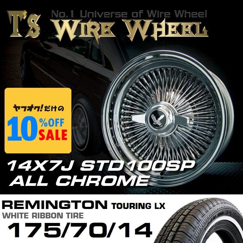 | 商品名 | T's WIRE 14X7J STD100SP ALL CHROME レミントン スキニーホワイトリボン 175/70R14 ホイール&タイヤセット |