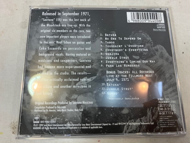 ご覧いただきありがとうございます。 以下が商品説明となりますので、しっかり読んでいただき、ご理解された上でご入札ください。 タイトル:サンタナ / サンタナⅢ CD 付属品:‐ 「サンタナ / サンタナⅢ CD」となります。中古品のため傷や汚れがございます。また、ディスクにも小さな傷がございます。聴けないほどの損傷はないかと思います。 このような品をお探しの方はご利用ください。 商品状態は画像で確認して下さい。 画像で確認できない、傷・汚れ・ラベルハガレ等がある場合が御座います。 |