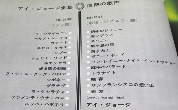 LPレコード盤 昭和の大歌手 アイ・ジョージ全集 情熱の歌声 (ラテン篇)(歌謡・ポピュラー篇)| 出价者 | 信用 | 价格 | 时间 |