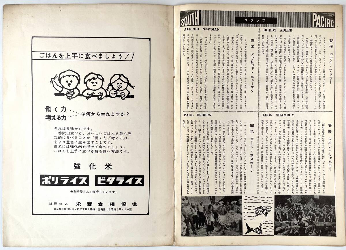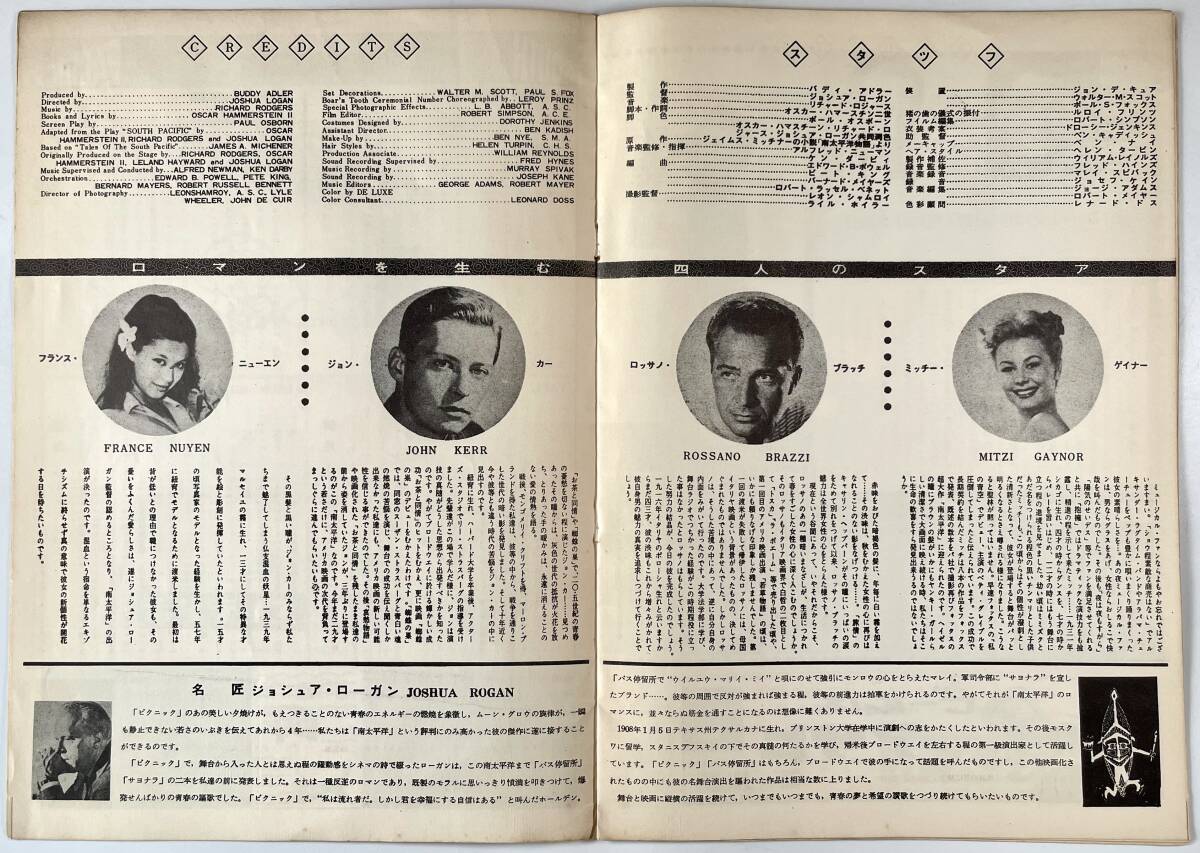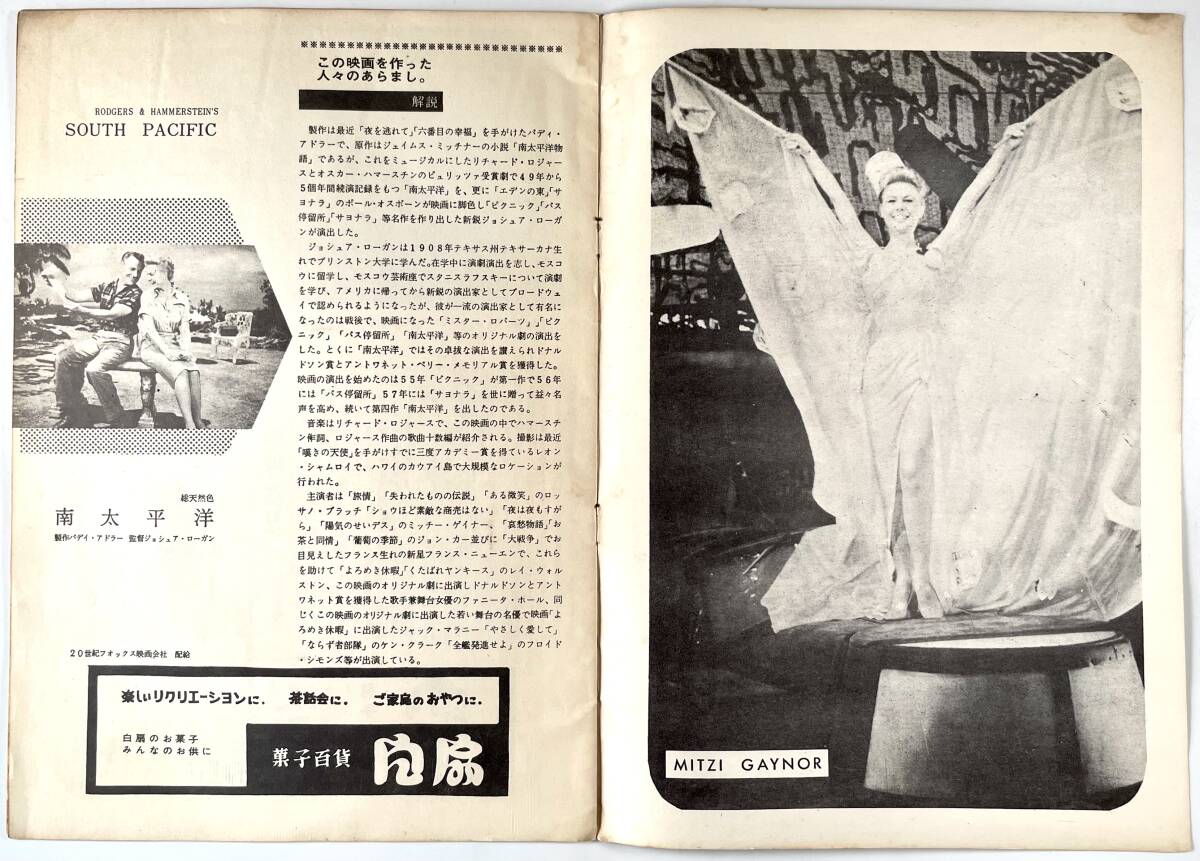 20世紀フォックス映画「南太平洋」パンフレット(SOUTH PACIFIC/ジョシュア・ローガン/ミッチー・ゲイナー/昭和34年/1959年/レトロ/JUNK)