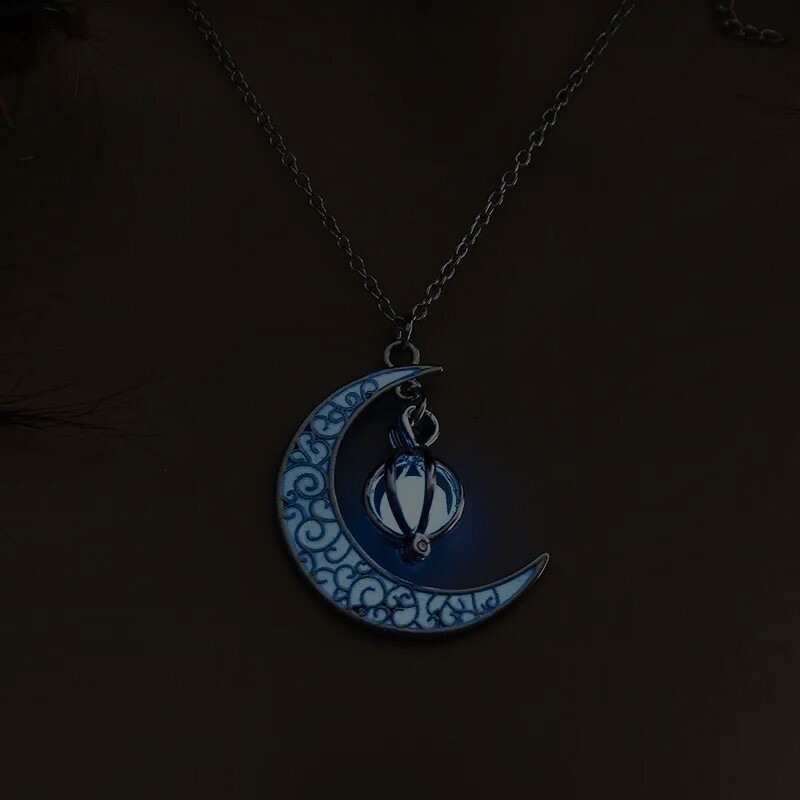 | 発光ペンダントネックレス暗い月の形のペンダント生命の木パターンで光る 1 ピース衣類装飾 sky blue |