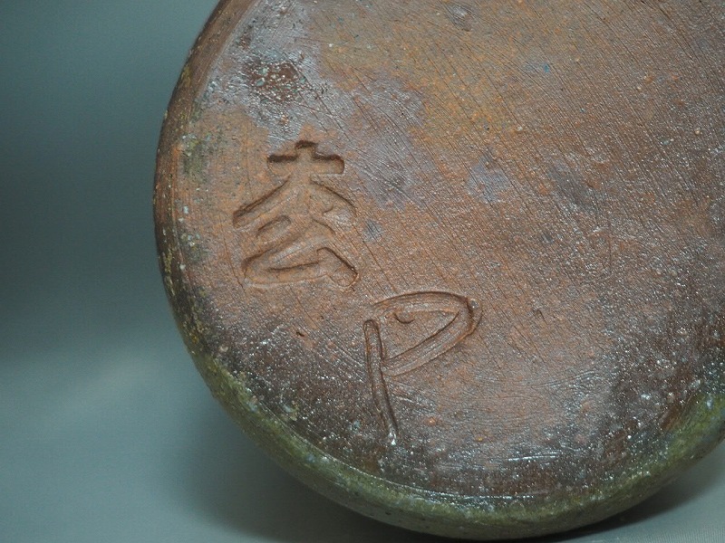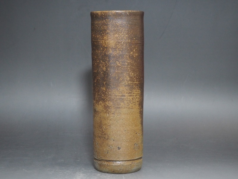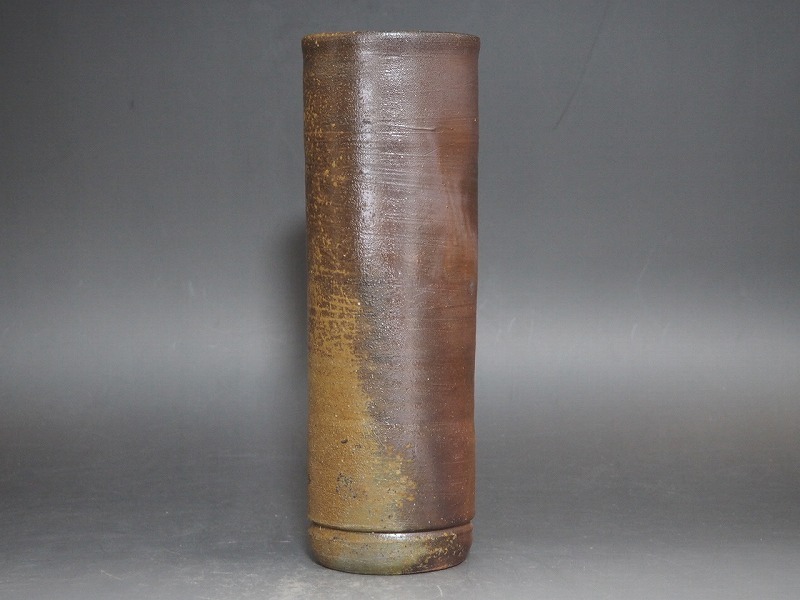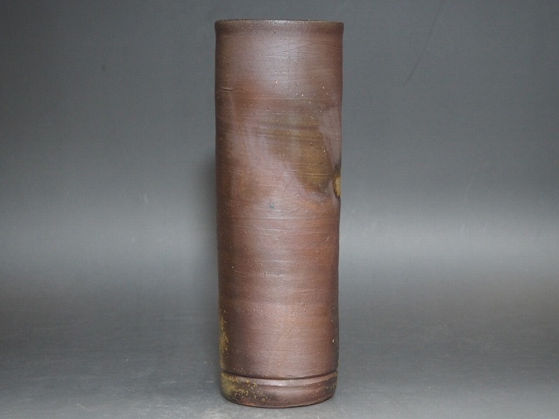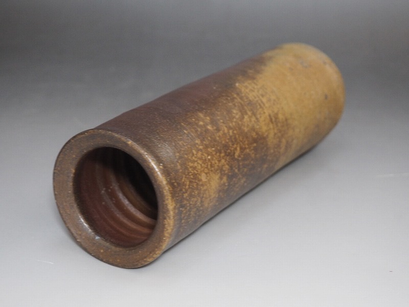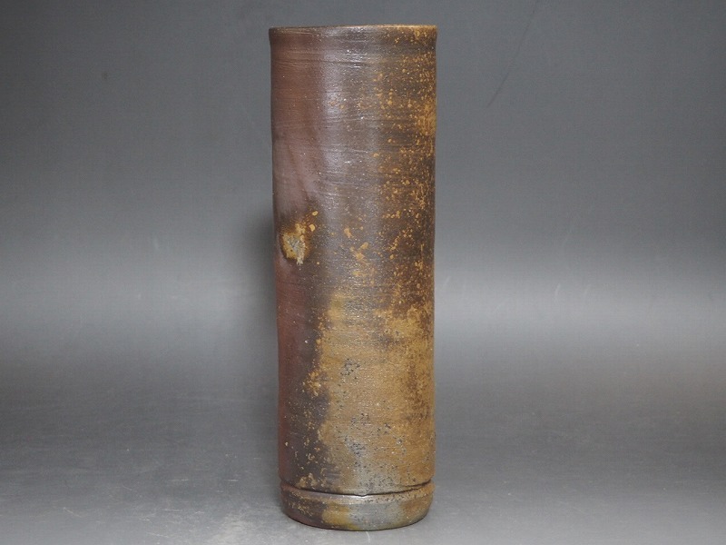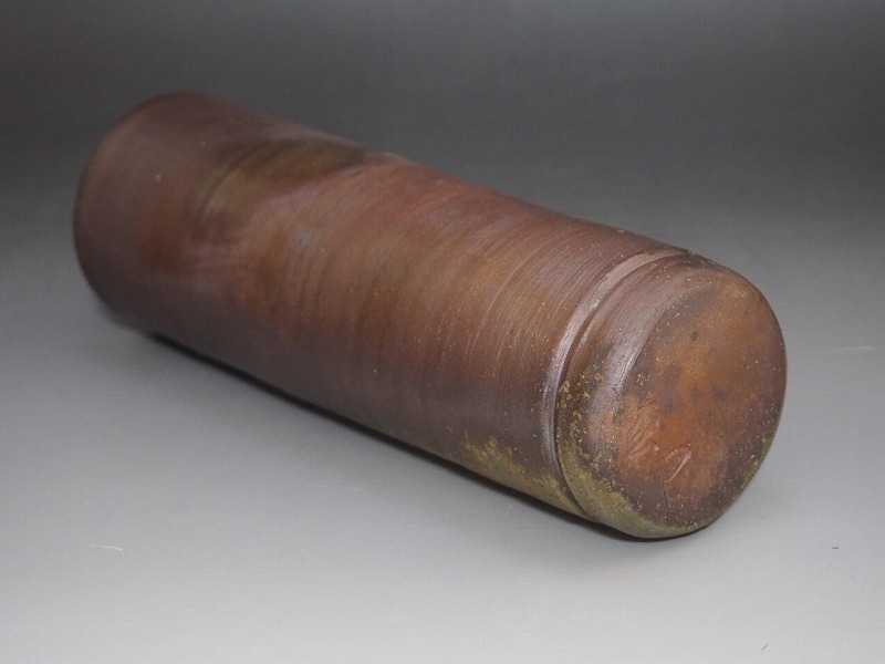 | B1802 備前焼 松園 作 花入 共箱付 ☆ 花道具 華道具 茶道具 花器 花瓶 花生 筒花入 飾壺 飾壷 焼締 陶器 作家物 在銘 陶印 美品 良品 無傷 | ||