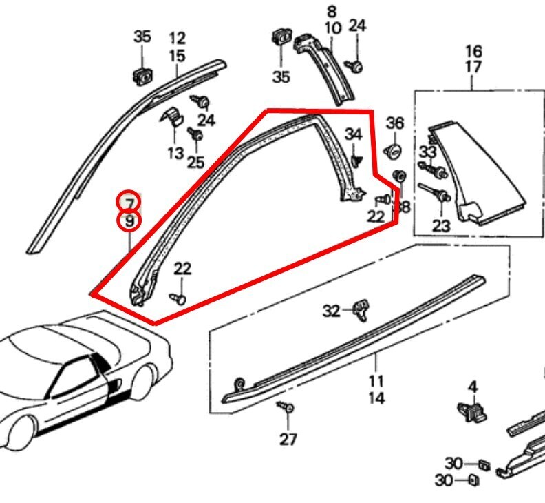| 未使用 ホンダ 純正 NSX NA1 NA2 NSX-R ウェザーストリップ 左右セット ドアー アッパー HONDA Genuine Door upper weather strip LR set |