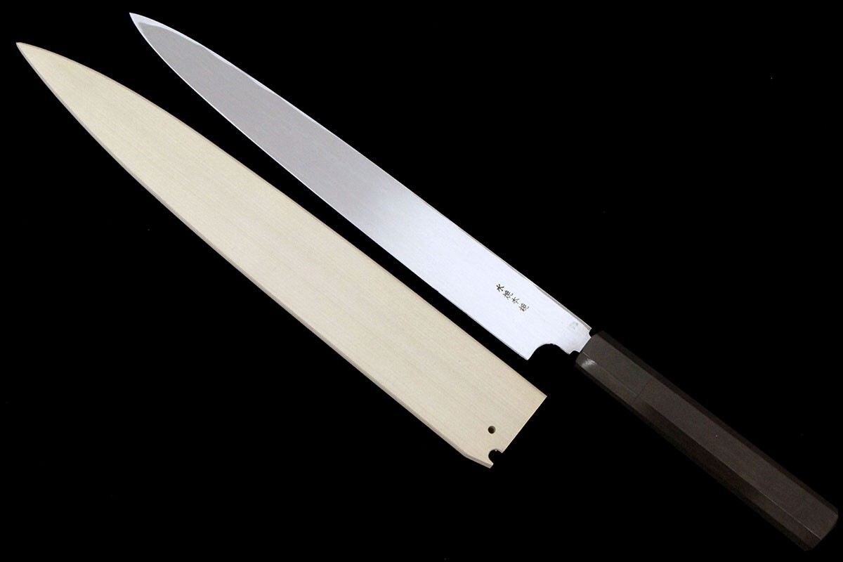 高鳳正國 柳刃包丁 水焼本焼 九寸 平鏡面 黒檀柄 鞘・箱付