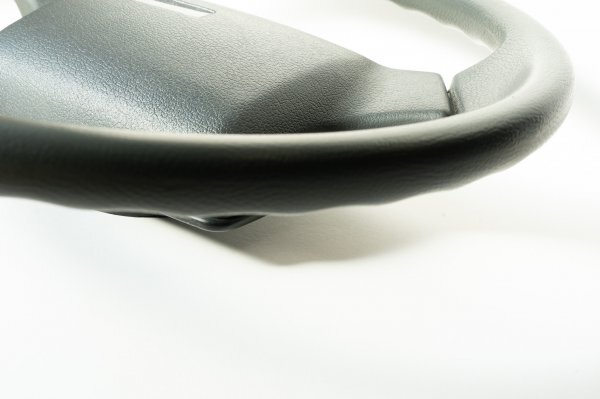 ウレタンステアリングにありがちな、テカリやベタつき、表皮の深い摩耗が少なく、純正ならではのシボ(凹凸模様)がくっきりと残っている部分があります。