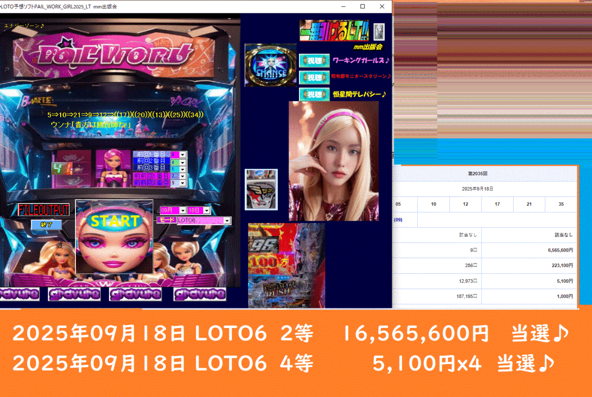 [◆LOTO予想ソフトPAIL_WORK_GIRL2025_LT]09月18日 LOTO6 ☆GOGO★神回 総合点41 そう、買わないと当たらないけど
