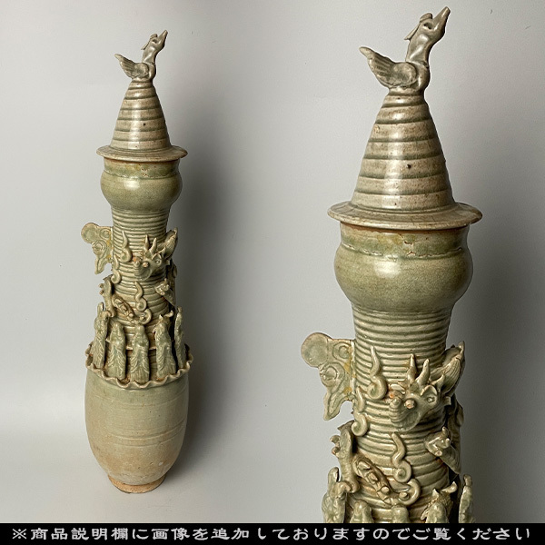 中国古美術品 青白磁 日月壺 日月瓶 中国南宋時代 副葬品 特大 高さ約59cm |
