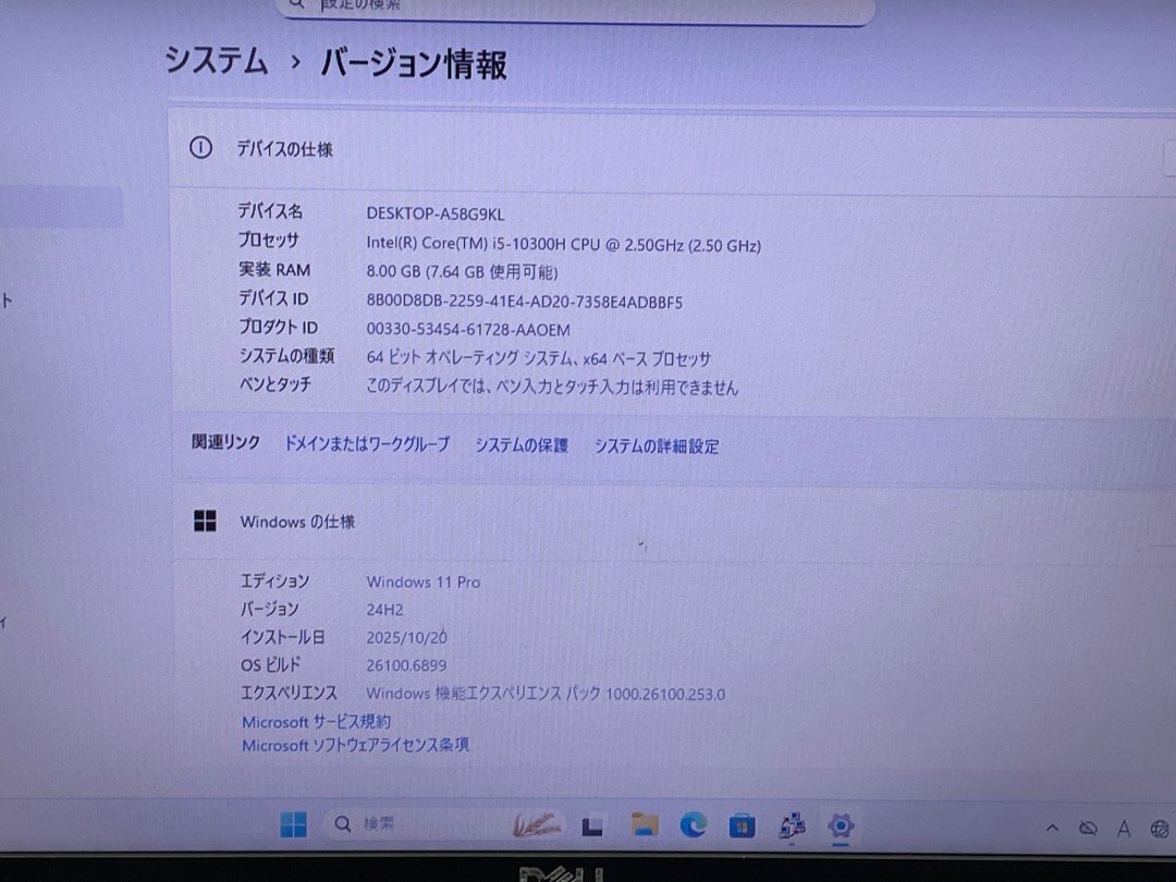 備考2 | CrystalDiskInfoで健康状態正常(81%)の表示 内蔵スピーカー音割れ有 |