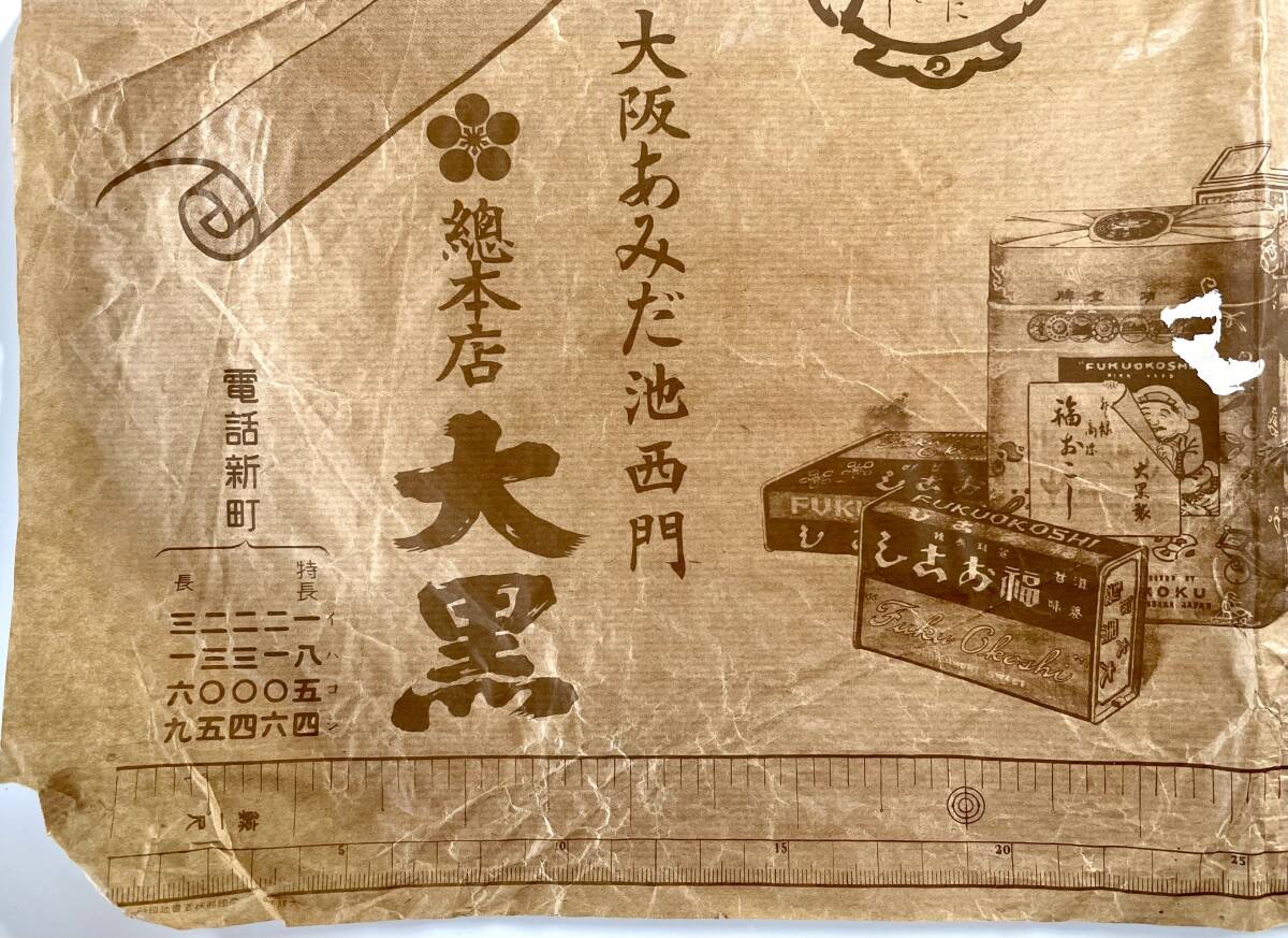 資料 大阪あみだ池西門「総本店 大黒」の包装紙(福おこし/粟おこし/破れ有/昭和レトロ/JUNK)| 出价者 | 信用 | 价格 | 时间 |