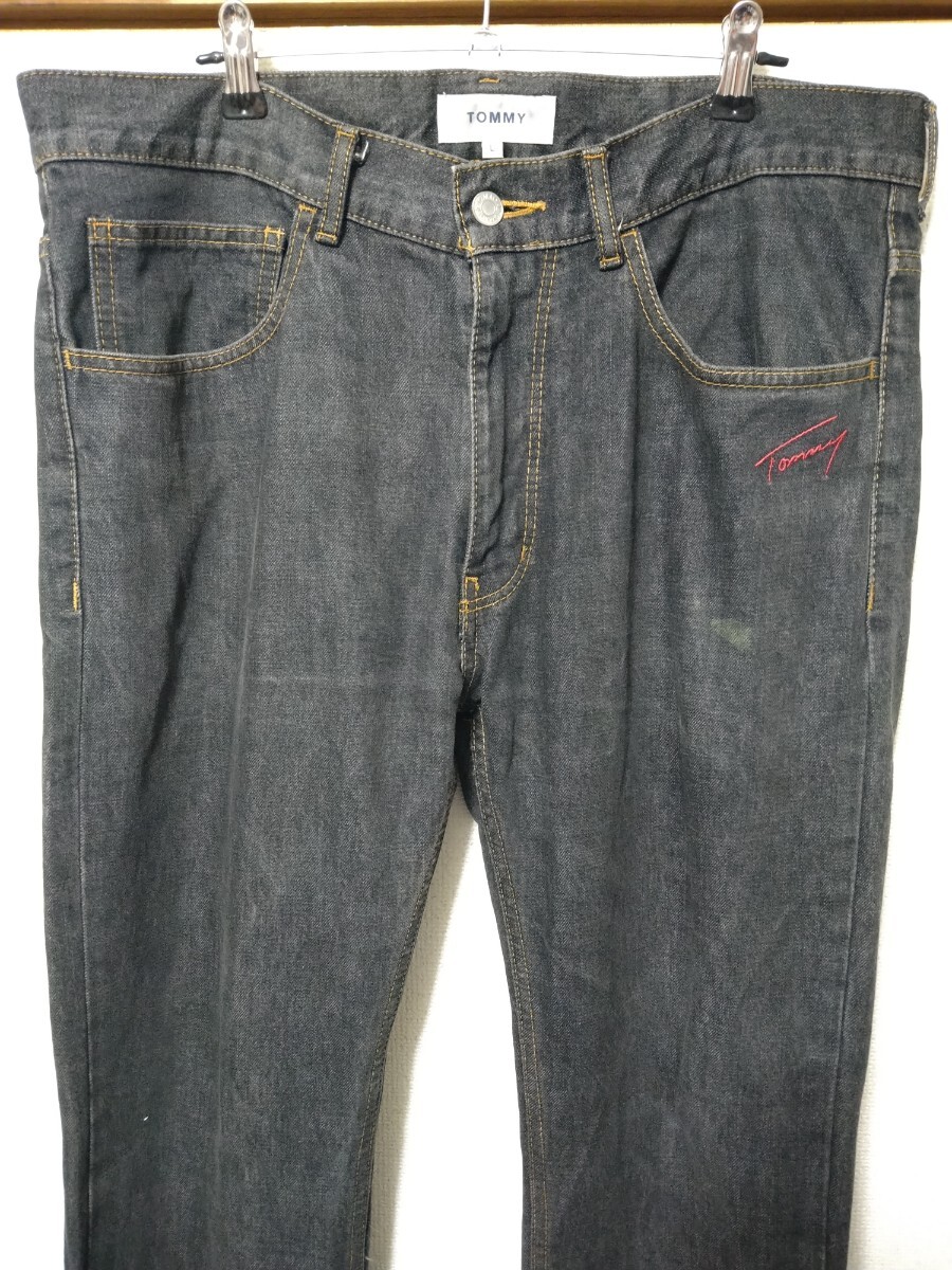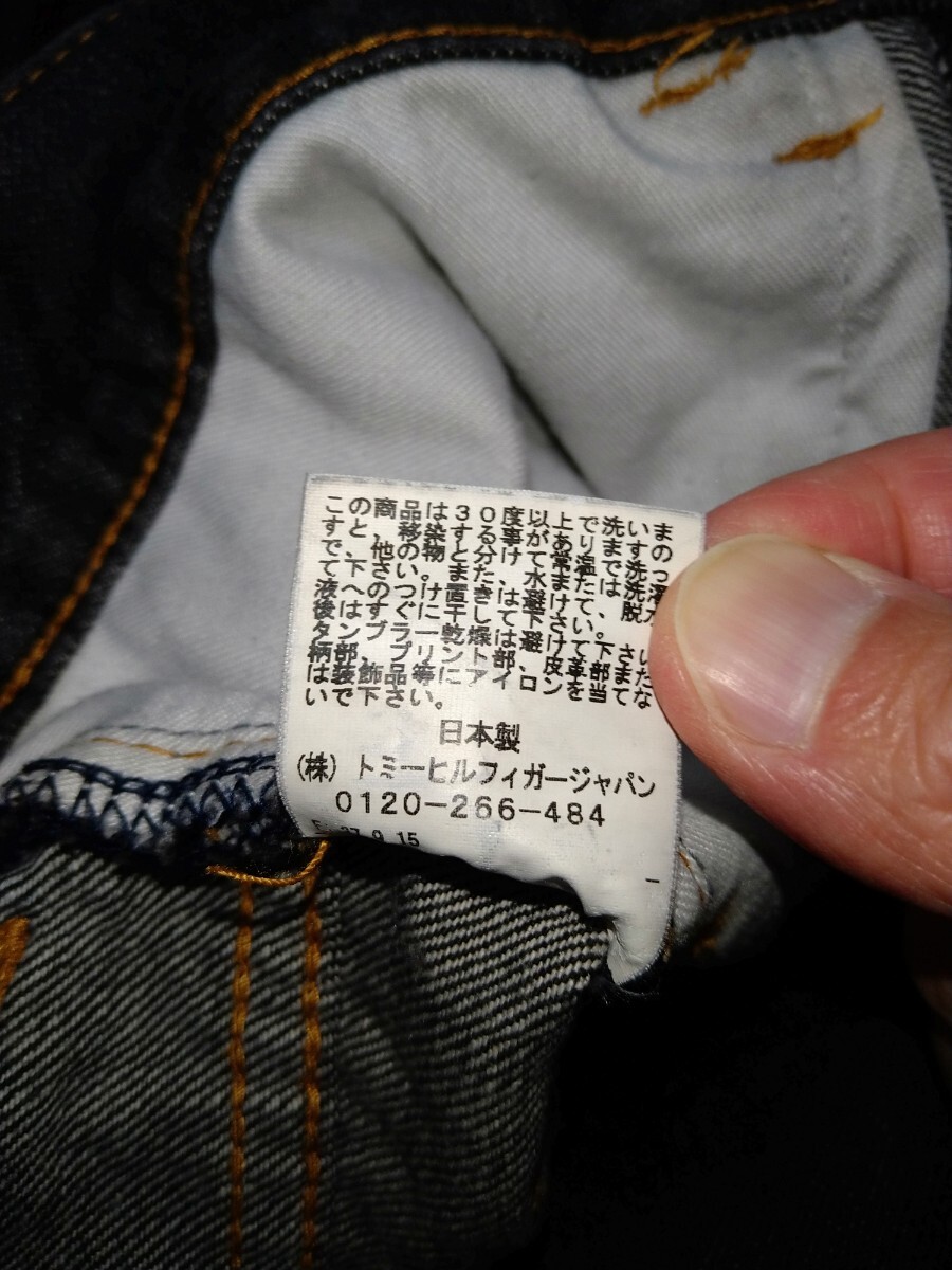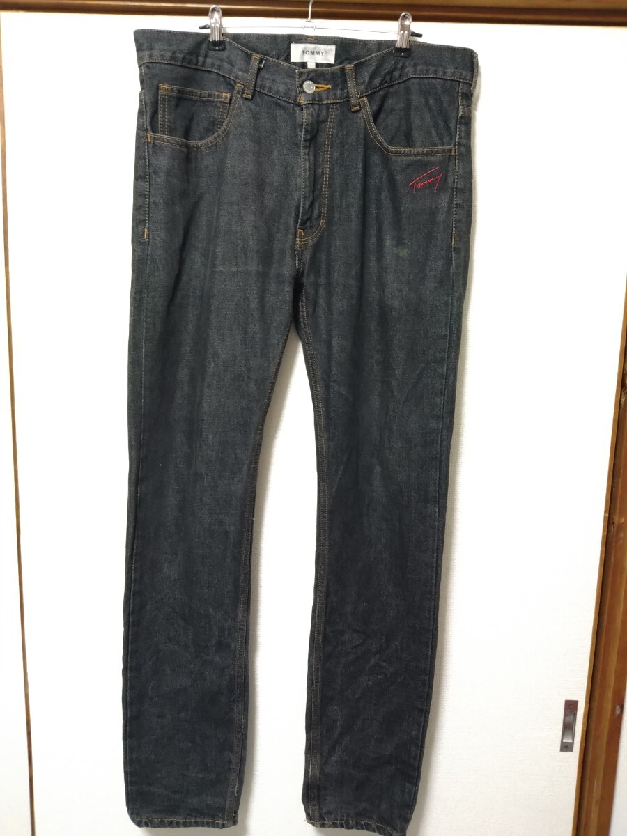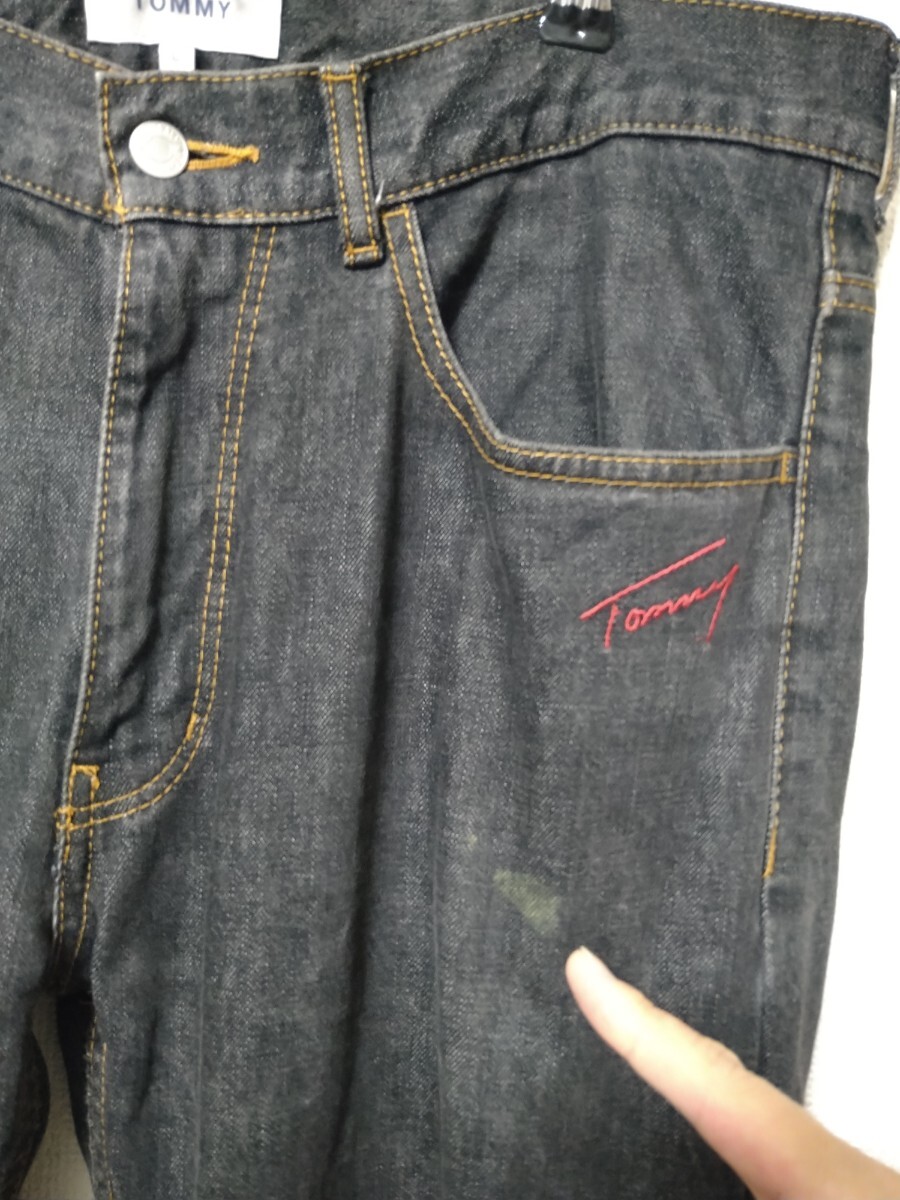 【TOMMY HILFIGER】のブラックデニムパンツ、ウエスト〜腿がゆったりして膝から下へ細くなるテーパードシルエットです。前面のロゴは刺繍、バックポケットのロゴはプリントです。家庭洗濯済みで全体の色落ちは軽度ですが、裾後ろ側や股部分にややダメージ(写真3,9)と、前面向かって右側に小変色(写真8)があります。着用に差し支えるレベルではありません。| 出价者 | 信用 | 价格 | 时间 |