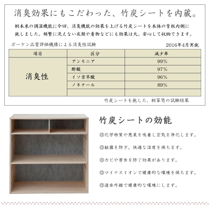 ■商品について/取っ手金物のないシンプルに仕上げたモダンな印象の桐箪笥。洋室などのフローリングにも合うデザインはリビングの中心にもはまる仕上がり。桐材は内部を一定の湿度に保とうとする働きがあるので大事な着物や洋服などを湿気から守る桐箪笥にしまうのがベスト。内部背板には竹炭シートを施しているので、消臭効果もプラス!クローゼットにもおさまるコンパクトサイズからラインナップし、着物や浴衣、洋服など長期保管に最適です。前板を2重に組み上げた箱組仕様で頑丈なつくりはもちろん、その構造だからできる繊細で優雅な取っ手デザイン。経年変化の風合いを楽しめる白木タイプ、ナチュラル・ブラウンの塗装仕上げタイプと3カラーをご用意。買い足し積み重ねて増える着物と洋服をしっかり収納。| 出价者 | 信用 | 价格 | 时间 |