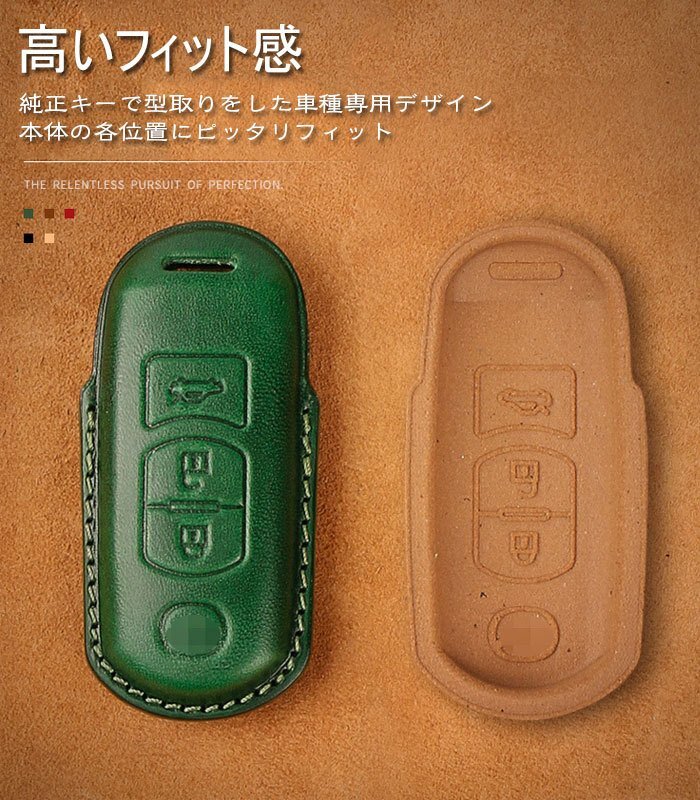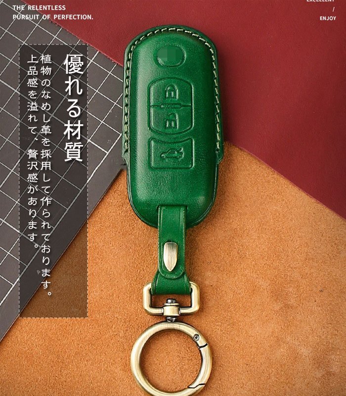 「優れる材質」植物でなめした牛革のテクスチャがはっきりと見えて、通気性がよく、お使いの車のキーをよく保護することができます。しかもキーケースのエッジ部分に栃木県から輸入したナチュラルエッジオイルを使い、色と味がなく、本革キーカバーの耐磨性をもっとアップグレードしました。