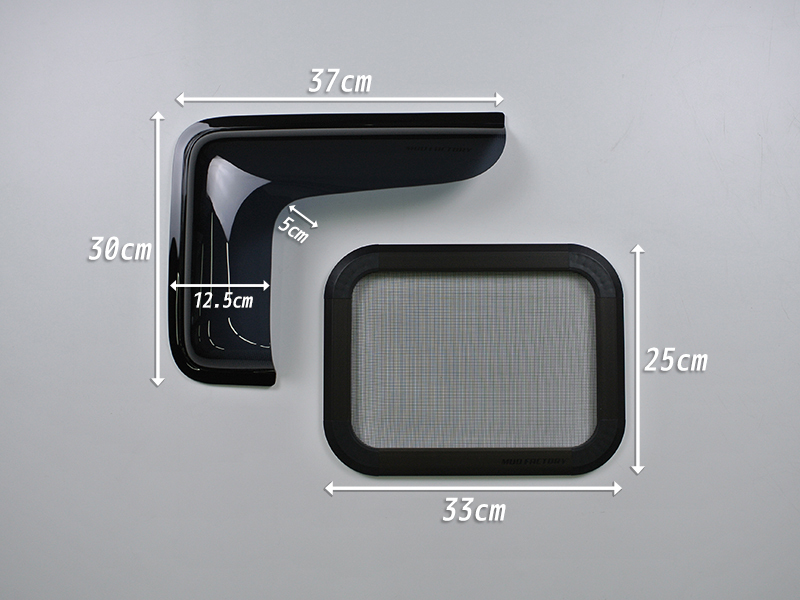 | 【機能・詳細】 取付たままでも、窓の開閉ができます! ・車検対応品で安心 ・窓の形に合わせたカーブ付きフレームでフィッティング良好 ・網戸、バイザー共に一点ずつ実車で確認済み ・4点留めで簡単取り付け |