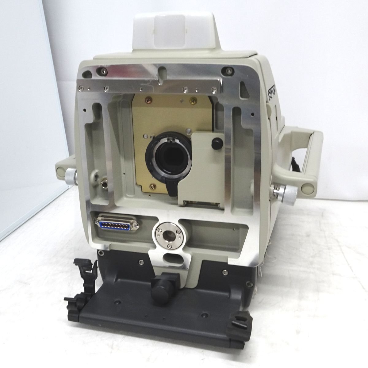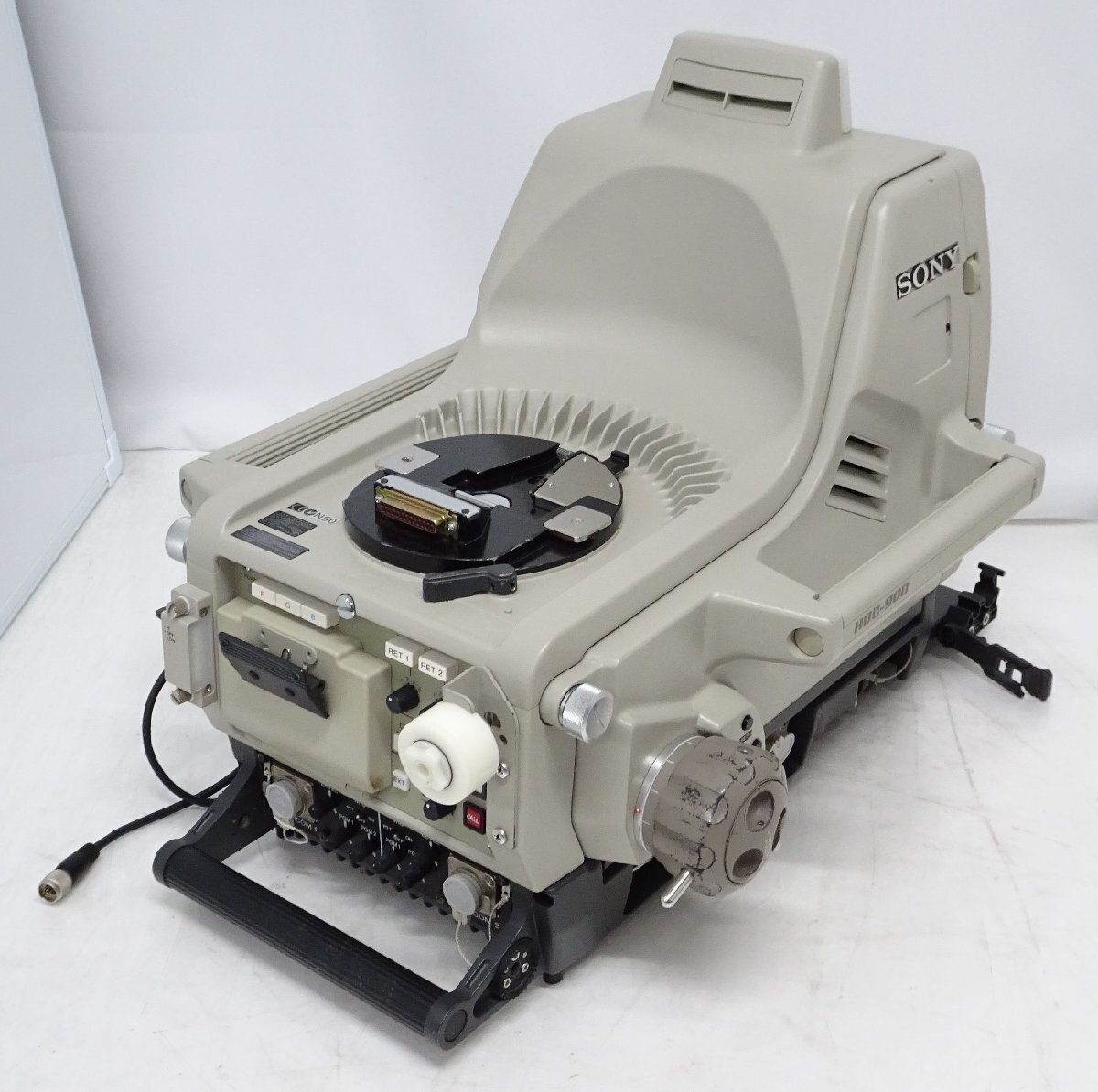 商品説明 SONY HDC-900 + HDCU-900 スタジオ用CCDカラービデオカメラ&コントロールユニット の出品です。 ビューファインダー、リモートコントローラーは付属しません。 光ケーブルの種類は多治見となります。 ☆動作確認につきまして 両機を光ケーブルで繋ぎ、リモートコントローラーを用いて動作を確認しました。 ・ブルーフィルターが一部曇っており、映像がボヤける場面があります。 ・HD-SDI、SD-SDI出力は全端子OKです。 ・ND/CCフィルター操作OK ・HDC-900 背面の操作は各種OKです。(インカムは未確認) ・BOARD STATUS全てOKです。 映像出力とステータスは動作OKでした。 フィルターの方を改善できれば、まだ運用は見込めると思われます。 写真10枚目はVFと70倍レンズを取り付けての動作確認風景です。 ☆注意事項につきまして ・ブルーフィルターが一部曇っており、映像がボヤける場面があります。 ・HDC-900側面、フロント左側の突っ張り棒が折れており、置くと傾きます。[写真6枚目/左下] ・HDC-900前面、レンズ固定ゴムですが左側がちぎれています。[写真6枚目/右下] 上記注意点&年代物との事で、中古/現状品にて出品させて頂きます。 商品詳細