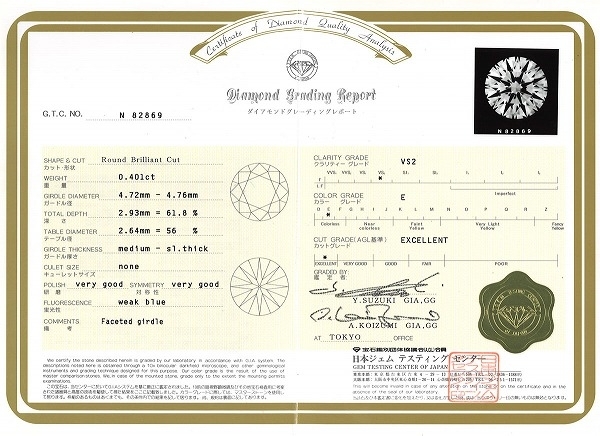 | K18YG リング 指輪 17号 ダイヤ 0.401 VS2 0.17 鑑定書 総重量約3.1g 中古 美品 送料無料 | |