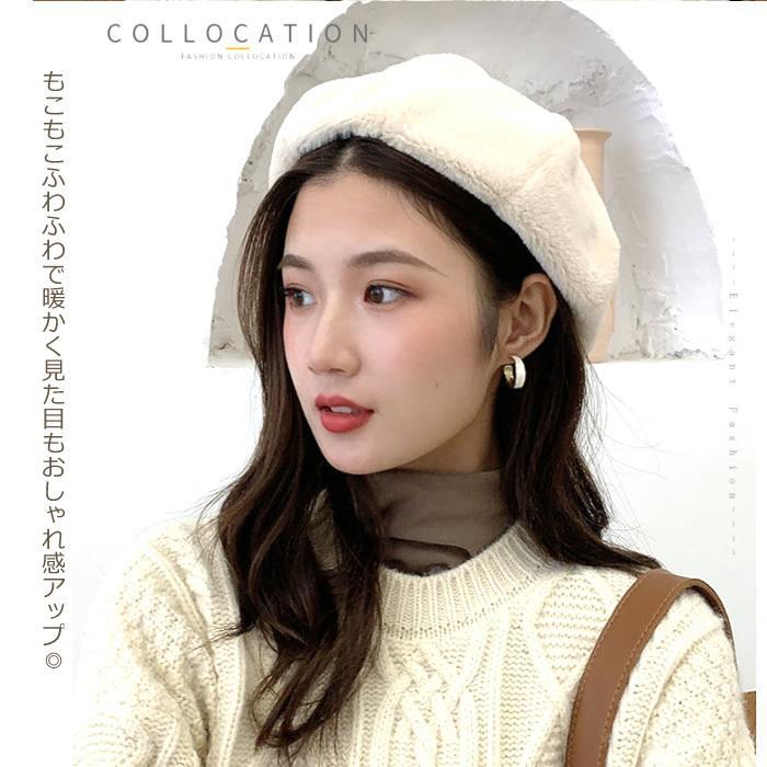 ファーベレー帽 ベレー帽子 フェイクファー レディース 冬 秋 防寒