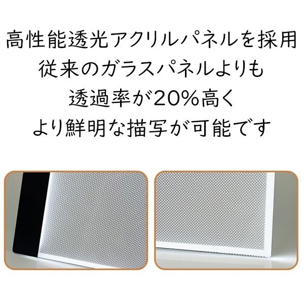 | 商品説明 | 3段階調光が可能なLED トレース台です 漫画 アニメ 製図の世界では必需品とも言える ライトテーブル トレースボードをご家庭で ほぼA4サイズでUSBケーブルから給電 省エネ性能にも優れたトレーシングボードです サイズ ヨコ:約30cm×タテ約:20cm 厚さ:約3.5mm USBケーブル:約140cm 端子の種類:マイクロUSBタイプB