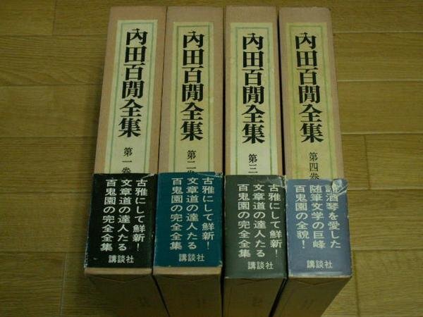 内田百聞 講談社 昭和46~47年第1刷。月報つき。帯つき(小さい破れ)。帯つき。函にヤケ、きず、すれ、よごれ。天地小口に薄いヤケ。ページに少しの曲り(第1巻)あり。コンディションは並です。