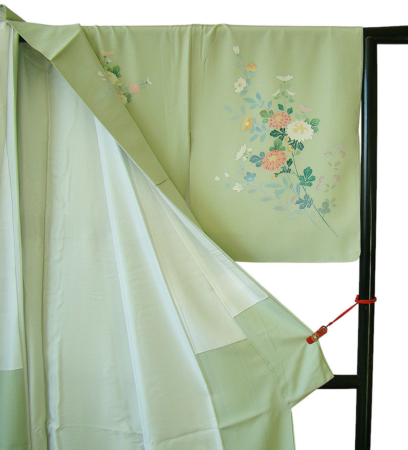 ※滑らかな極上の着心地を誘う上質な重めの極上丹後縮緬地を纏う、 日本情緒が匂い立つ優美な着物姿を謳う上品な高級訪問着です。 慶賀の宴や記念の式典にも装いたい存在感際立つ気品を身に纏う清々しい秀逸品です。 どんなお客様にも好感度大の長く着られる一枚を大切に纏う醍醐味をご堪能下さいませ。 叙勲拝受式、パーティー、慶事の宴、冠婚祭、結婚披露宴、お茶会、社交着等々。 40代~70代迄幅広く着用出来ます。身長160cm~168cmの貴女に最適です。 |