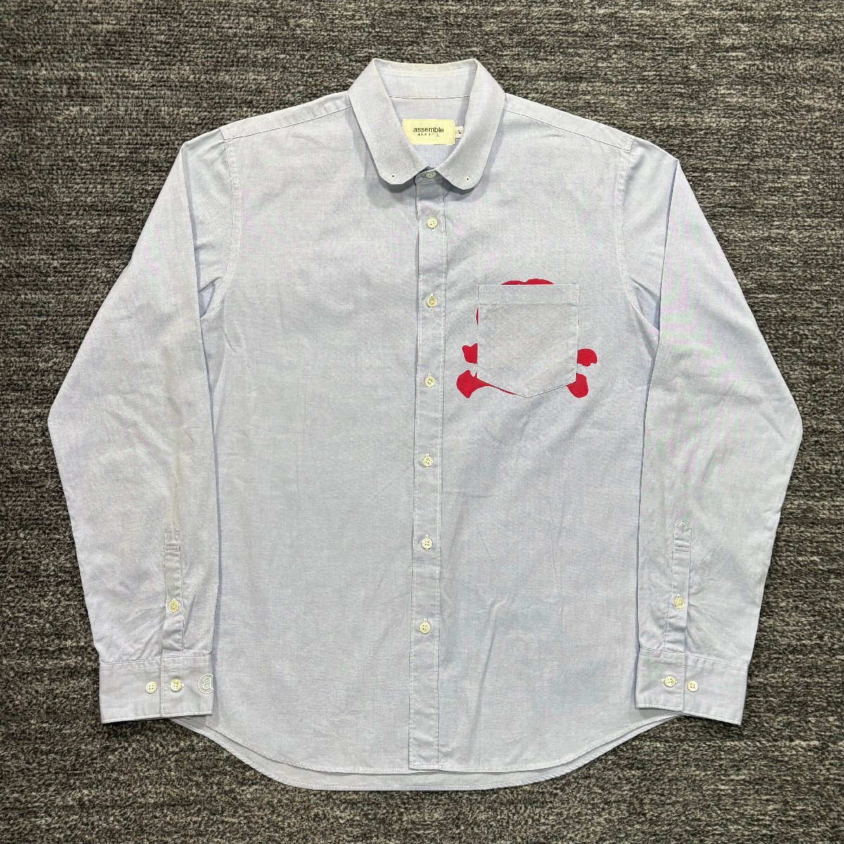 assemble a.k.a. a.f.f.a. スカルプリント ラウンドカラーシャツ ブルー |