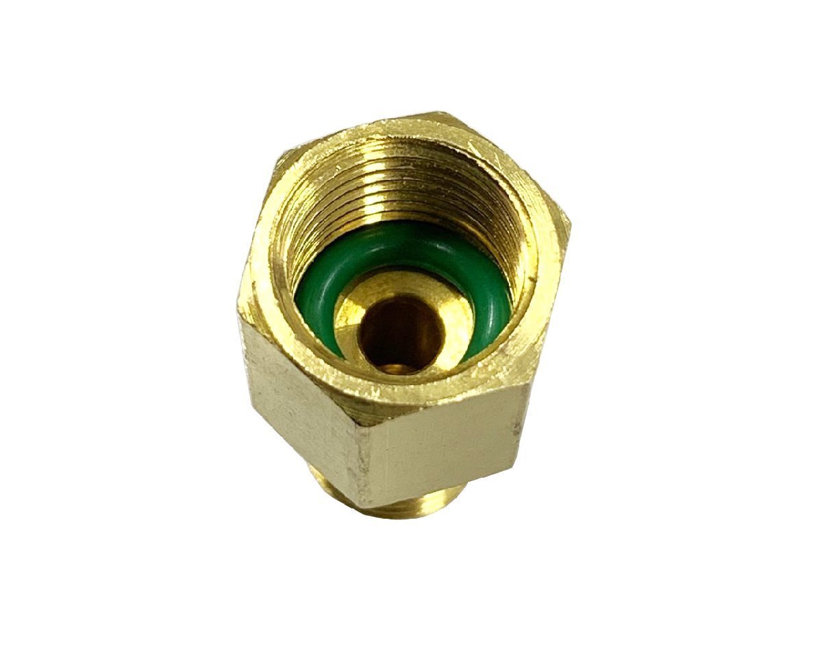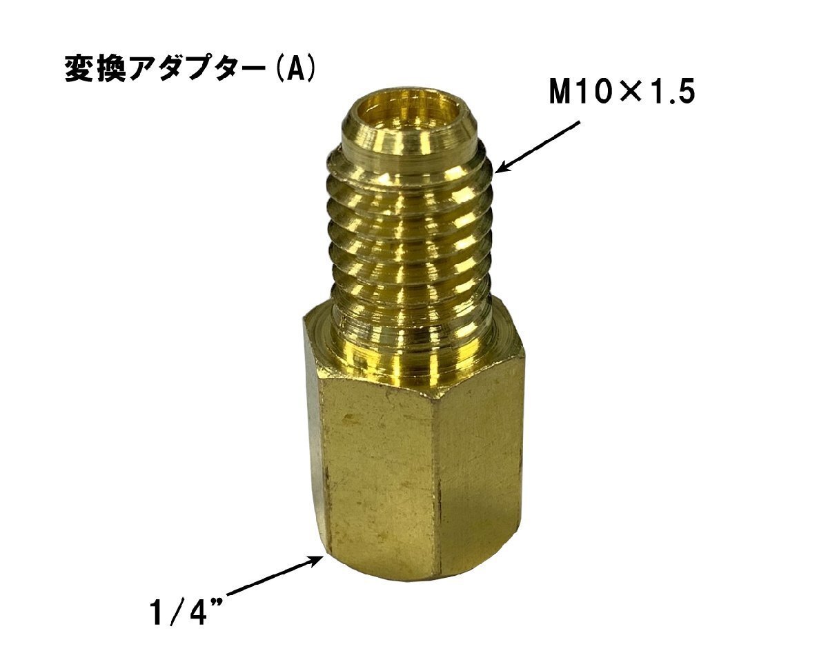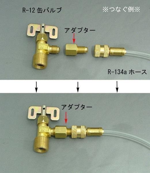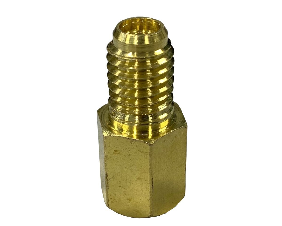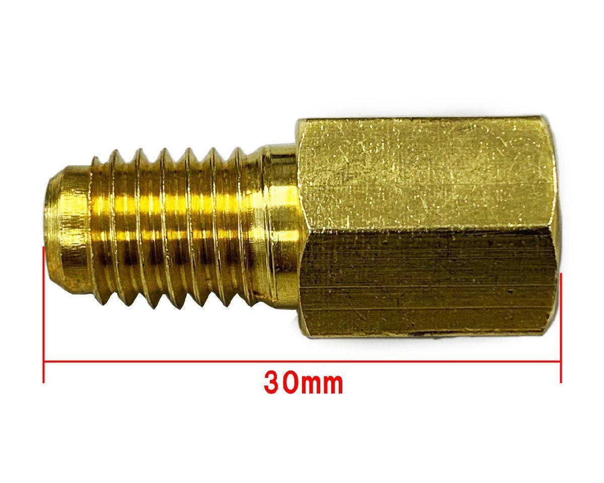 | 商 品 詳 細 | マニホールドゲージ等に使用可能の変換アダプターです! R-12の缶バルブに使用するものです。 オス : M10x1.5 メス : 1/4"SAE(7/16x20) |