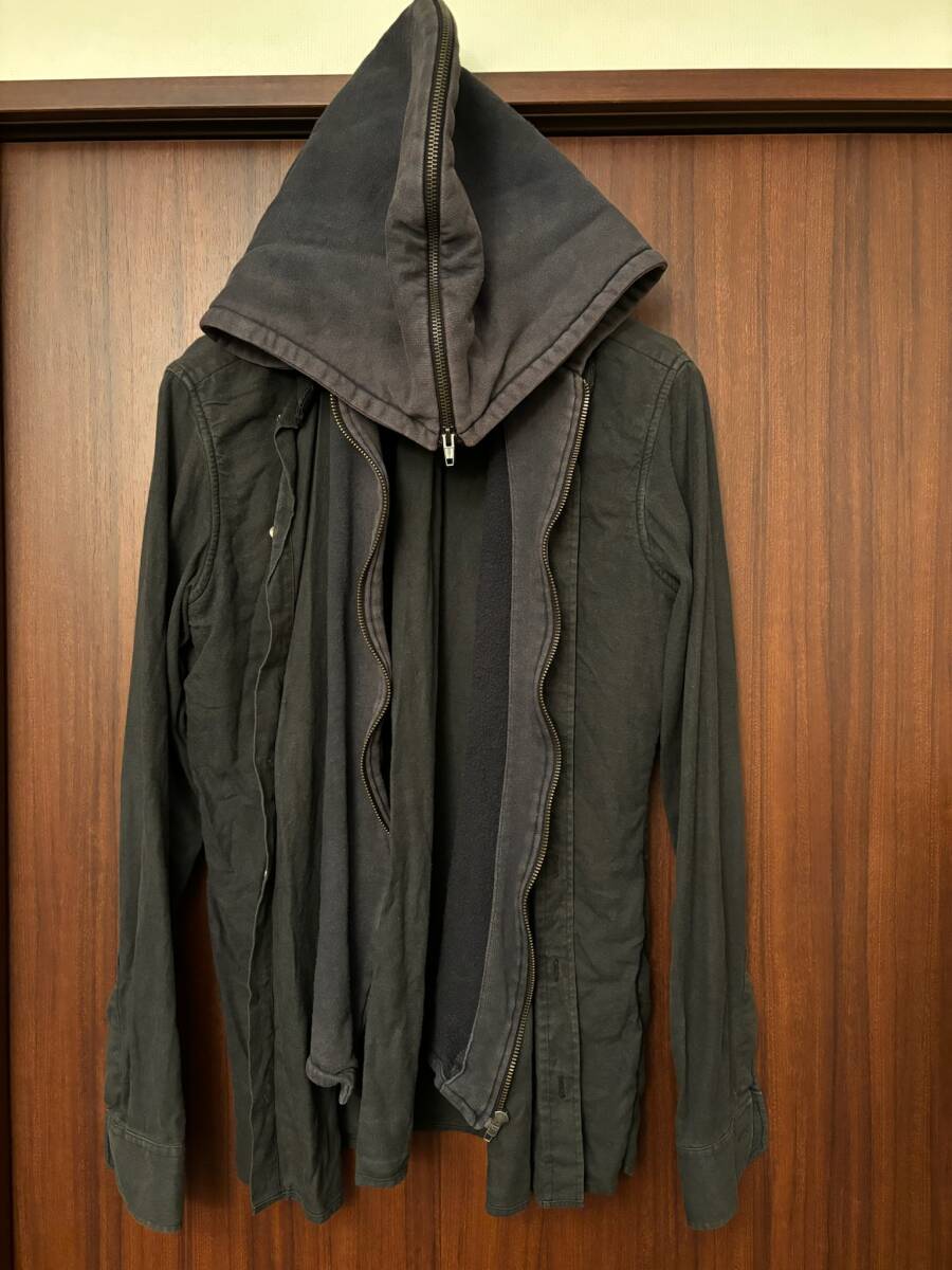 RAF SIMONS ラフシモンズ 2002AW 美しい実をつけるが同時に毒もあるというツタ植物 「バージニア・クリーパー(Virginia Creeper "Parthenocissus quinquefolia")」 がテーマになっている。 ネイチャーとプラスチックとの融合を試す二元性を表現したコレクションで 会場も植物が生い茂る場所でショーが開催された。 サイズ50ですが大きすぎません。 フーディ部分内側に褪色、袖ボタン欠損(スペアボタンがタグにあり移植可能) 穴無し シャツ部分の襟の切りっぱなし処理は元からでこれ以上ほつれません。 左袖に汚れあり(コーキング材が少し付いてしまった事によるもの) シャツとフーディがドッキングしており ジップを開けて羽織って着るのが一番かっこいいかなと思います。 ジップはOPTI製 素材コットン サンフレールタグあり 正規品で間違いありません。 ホームクリーニング済み ドライクリーニングモードでエマール系洗剤で優しく洗い、浴室乾燥機で乾燥させていました。 ドラム式乾燥機はもちろん使用してません。 サイズ50 肩幅46cm 肩切返し〜肩切返しを直線で計測 袖丈65cm 脇下身幅55cm 着丈73cm後ろ襟パーカー付け根から 画像の通りになりますので全く違うものが届いた以外で返品キャンセルできません。 ご了承の上お買い上げください。 ご購入から12時間以内にお支払い 到着から12時間以内に受け取りボタンをお願いいたします。 私のプロフご確認のうえご了承の上でお買い上げお願い申し上げます。 上記を守って頂ける方のみご購入下さい。 | ||