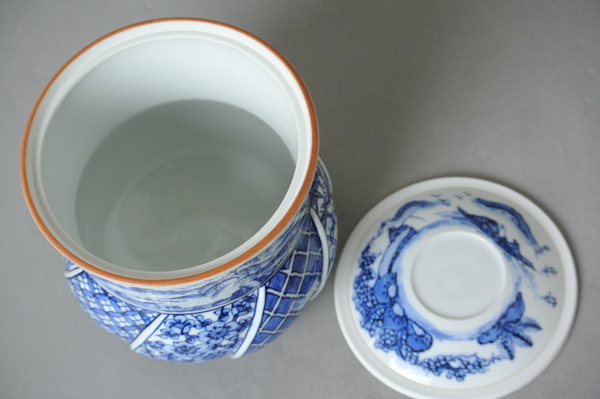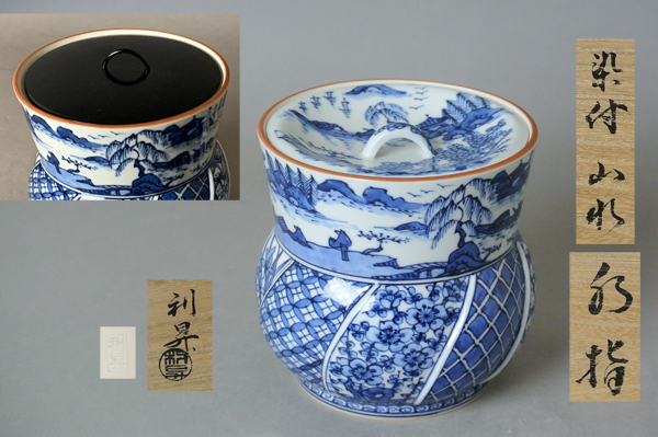 | 【 加藤利昇 染付 山水 水指 共箱・塗蓋付き】 |