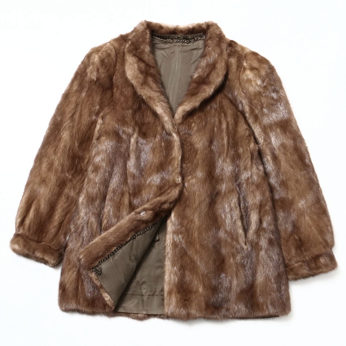 | GS4530◇SAGA MINK サガミンク 銀サガ デミバフミンク ファーコート ハーフ丈 毛皮コート ブラウン系 サイズ15 | |||