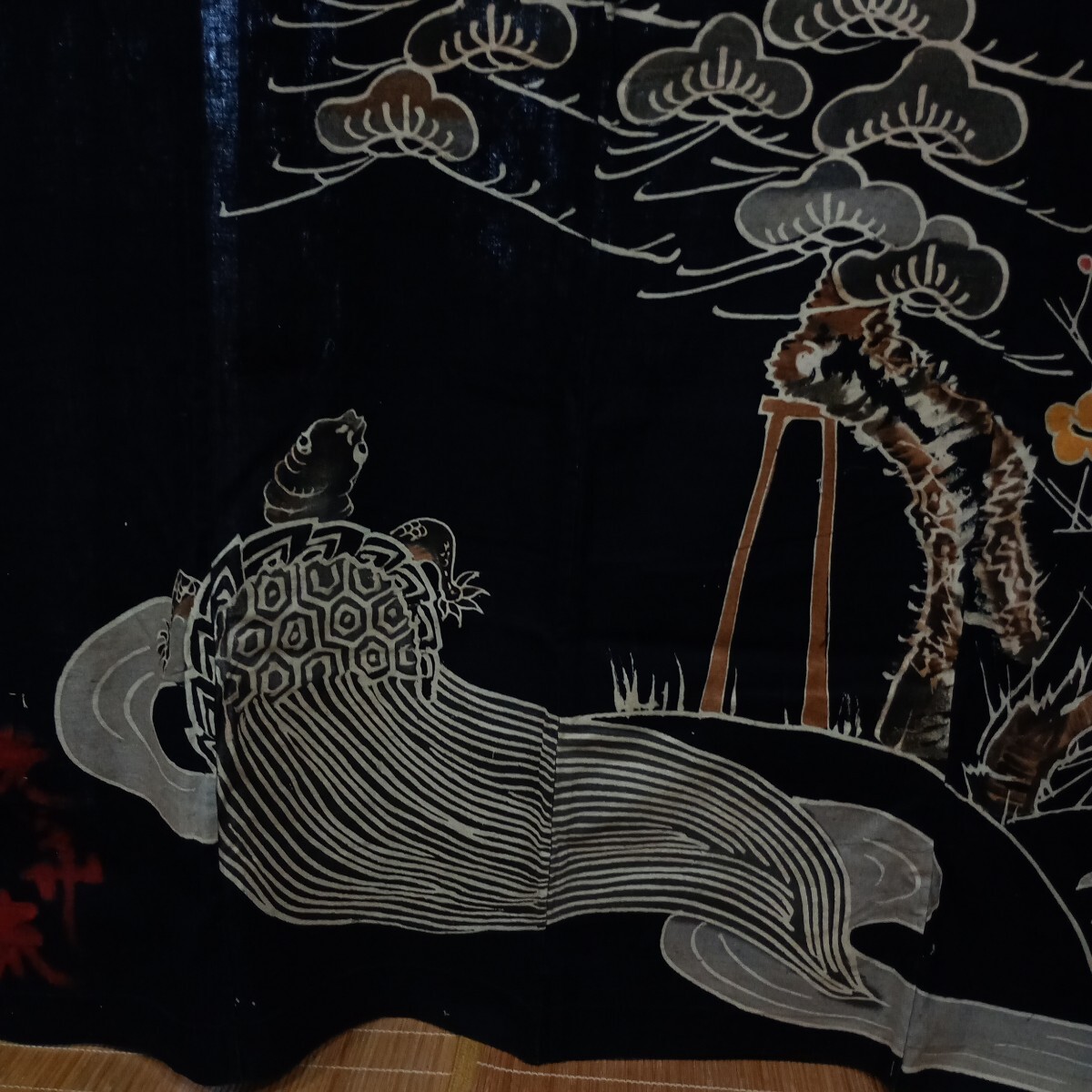 y-1166 筒描き 松竹梅に鶴亀 古布木綿 4幅 125cnx182cm リメイク用 [浏览原始页面]