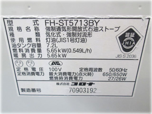 | メーカー・型式 | コロナ / FH-ST5713BY(W) | |