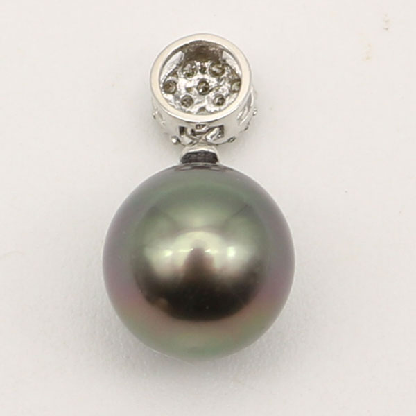 黒蝶真珠11.2mmダイヤ0.15ct18金ホワイトゴールドパールペンダントです。 |