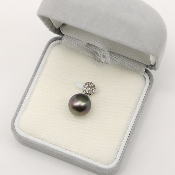 | 真珠 パール ペンダント 黒蝶真珠 ペンダント 黒真珠 11mm-12mm K18WG ダイヤ ブラックグリーンカラー ブラックパール |
