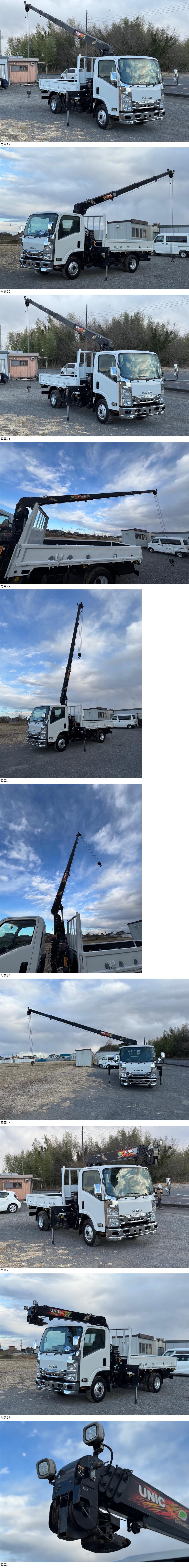 | H30年 いすゞ エルフ 3トン 4段クレーン付 平ボディ 標準ロング ラジコン付 車検付(R9年2月迄) 低走行8万キロ台 フレーム腐食無 |