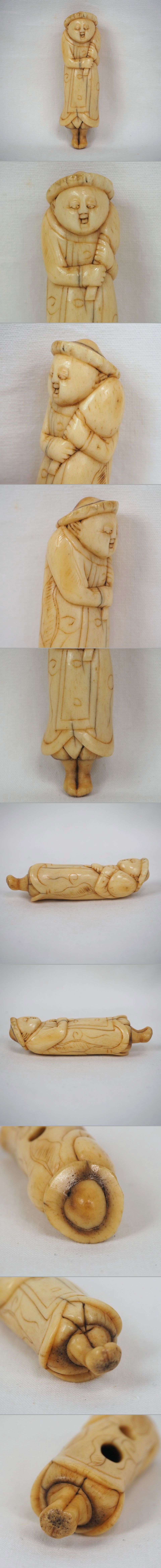 | 商品説明 | 高さ約 7.2cm 幅約 2.1×1.9cm ご覧のように、江戸時代鹿角材根付です。状態は良好です、詳しくは写真でご確認ください。 |