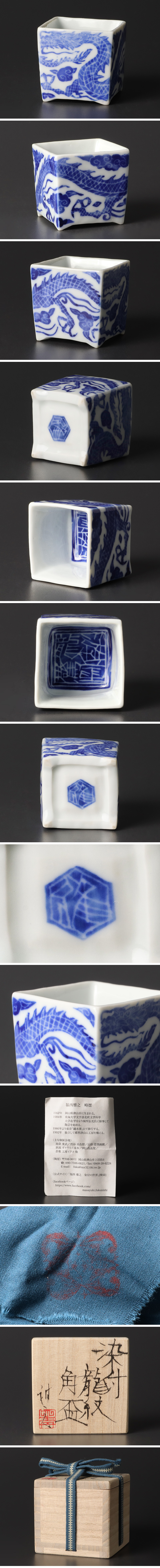 | 【古美味】福西雅之 染付 龍紋角盃 茶道具 保証品 |