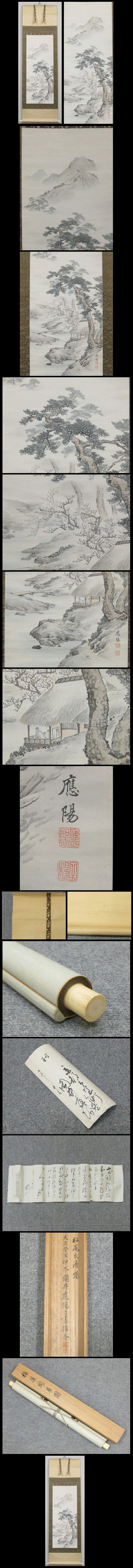 【國井應陽】1867~1923 京都出身。明治中後期~大正期にかけて活躍した円山派の画家。 国井応文の子として生まれ父に画法を学んで円山派を修得。 円山応挙筆「雪松図屏風」を寸分たがわずに模写する。号は謙斎・愍軒・子静・応陽。 ★商品サイズ★ ■掛軸 190×56.5cm ■作品 111×43.5cm ★商品の状態★ 作品に薄じみが少しがあります。 表具にしみ汚れがあります。 ご承知のうえご入札をお願いします。 時代など詳しくは画像にてよく確認のうえでご検討いただければと思います。 どうぞよろしくお願いいたします。 |